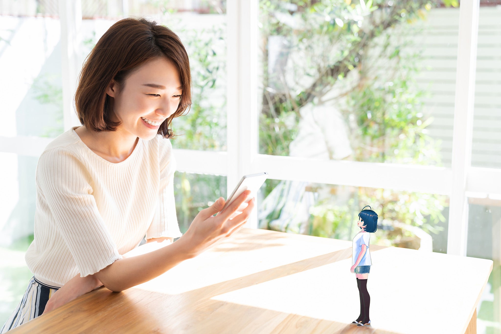 AVATAVIは「好きなアバターと一緒に現実世界を冒険する」をテーマとしたスマホアプリです。小人化した自分自身のアバターをAR[※1]で呼び出して部屋の中を探検させたり、好きなキャラクターを等身大で呼び出して一緒にお散歩したりと、アバターの種類や大きさによって何通りにも楽しむことができます。