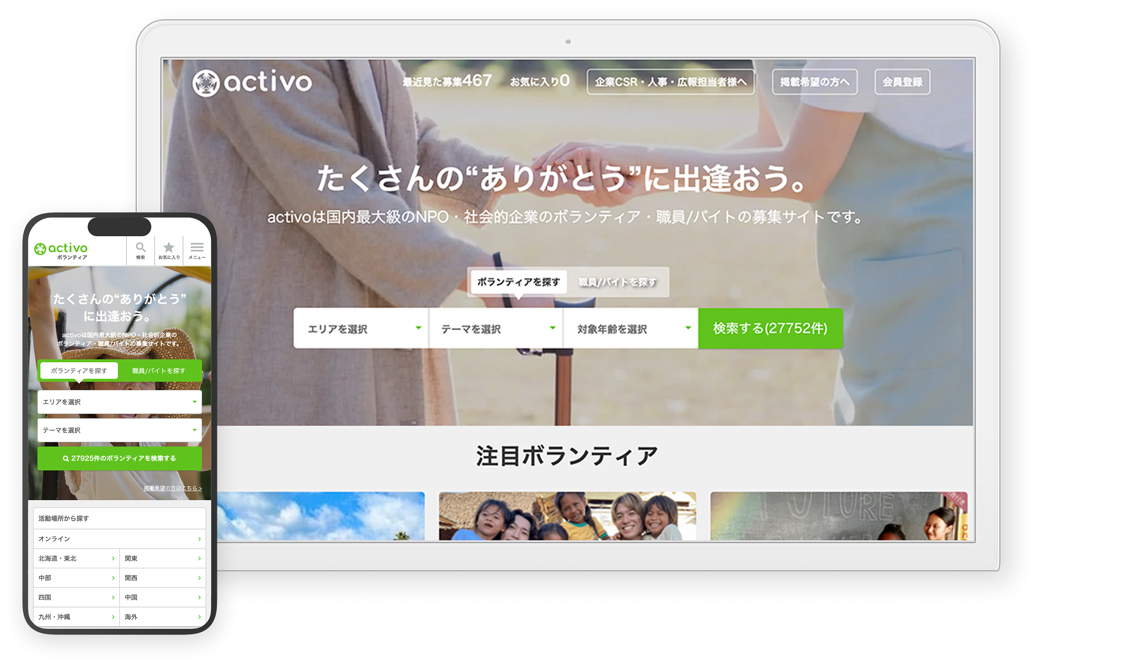 「activo(アクティボ)」は、2013年にサービスを開始した国内最大級のNPO・社会的企業のボランティア・職員/アルバイトの募集サイトです。