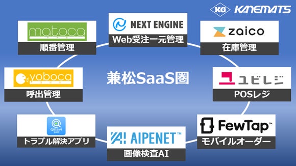 兼松に日々寄せられる顧客課題をDXの力で解決するため、SaaSを中心とした事業領域において、兼松は、タレットPOSレジや順番管理サービスなどの店舗DXサービスの拡充のため「兼松SaaS圏」を構築しております。