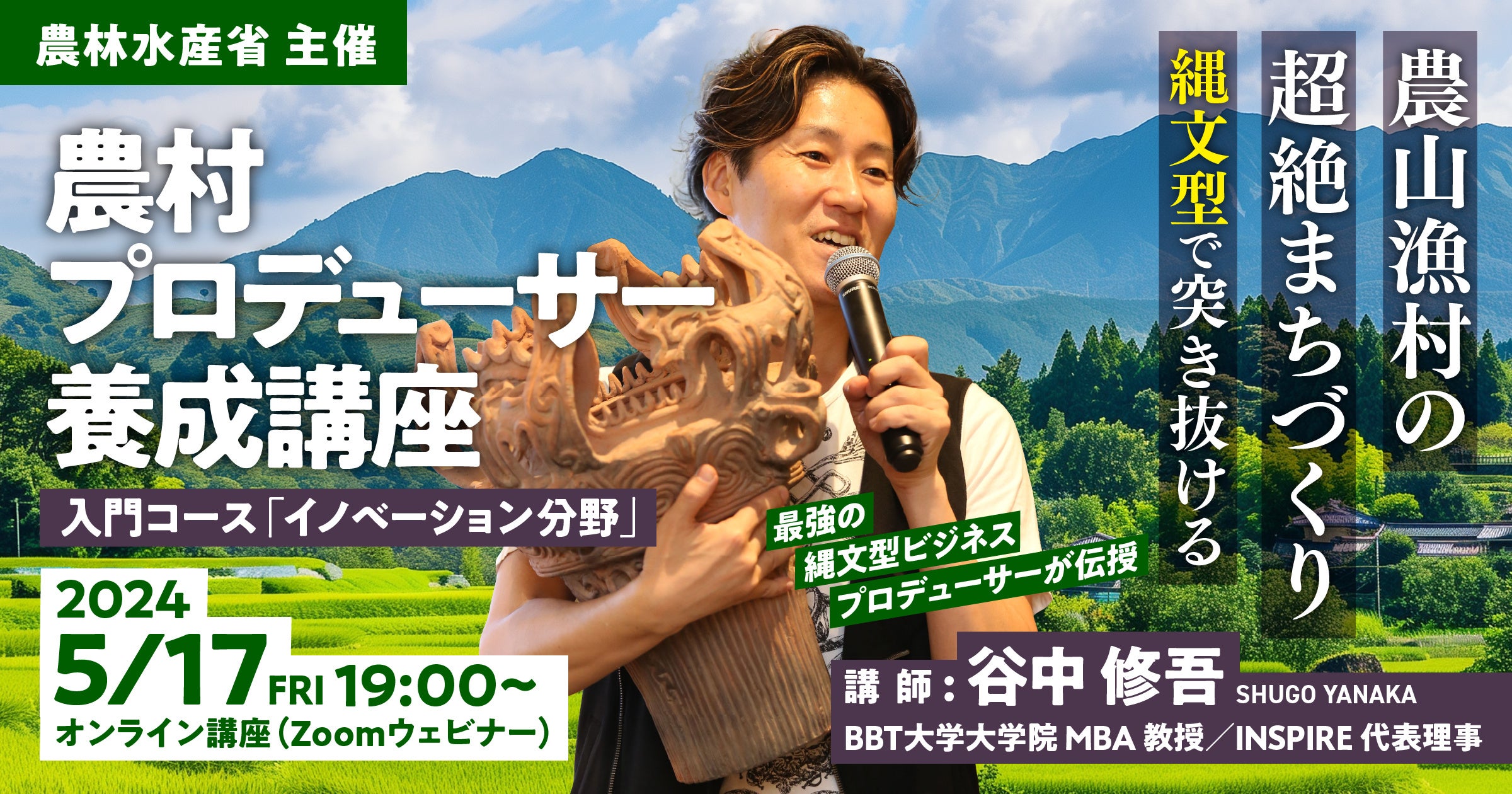 農林水産省主催「農村プロデューサー養成講座」イノベーション分野の受講申込を開始!農山漁村の超絶まちづくりを学ぶオンライン講義