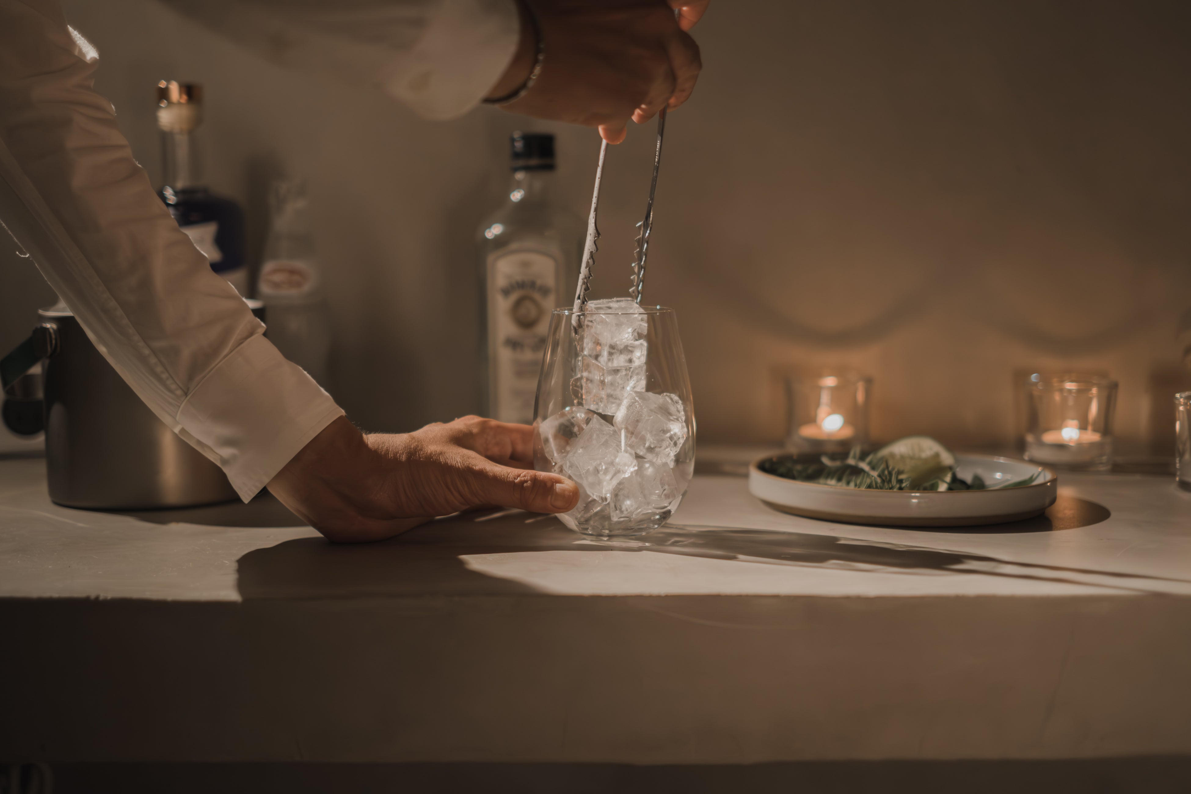 料理で身体を整えた後は、満月をイメージしたお月見ドリンクと、奄美で愛されているお菓子のお月見デザートをお部屋にお届け。バーテンダーが目の前でお月見ドリンクを作ります。テラスから穏やかな海に月光が映り込む現象「月の道」が見られることも。静寂が訪れる夜に、海や月、また自分と向き合い、心を整えていただきます。