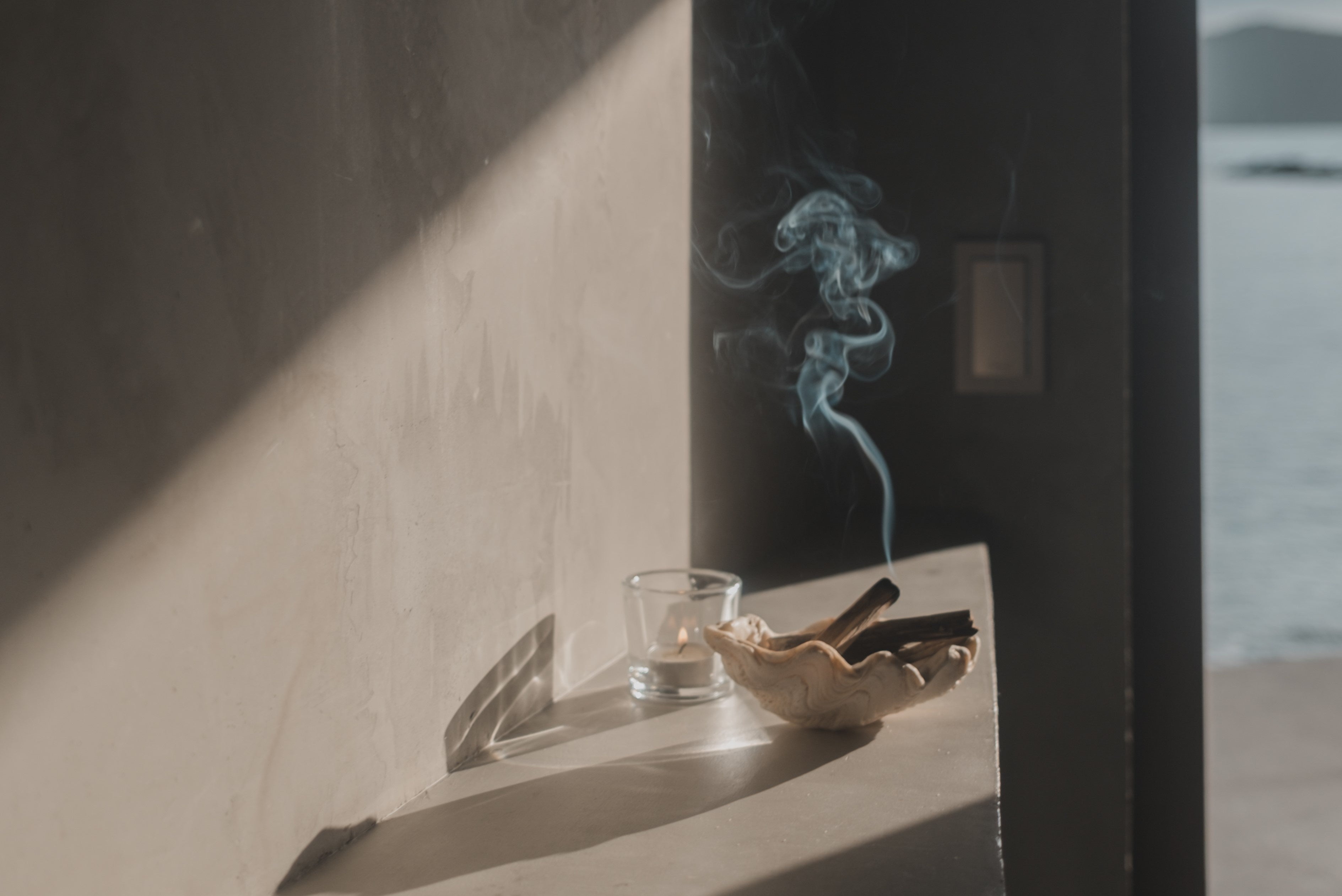 聖なる木と呼ばれる香木「パロサント」は、甘いながらもスッキリとした香りが特徴で、瞑想やヨガの際の空間浄化にも使われています。奄美の藍で染めたオリジナルパロサントを焚いて、より深いリラックスを。
