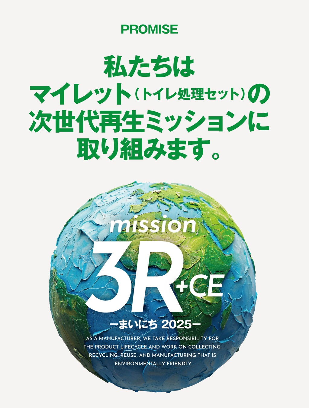 使用期限が過ぎた未使用の「マイレット S100-Rec.」を回収し、リユースまたはマテリアルリサイクルする「3R PROJECT」(リデュース・リユース・リサイクル)を計画しています。パートナー企業様と共にこのスキームを構築し、製品ライフサイクル全体での廃棄物削減を目指します。