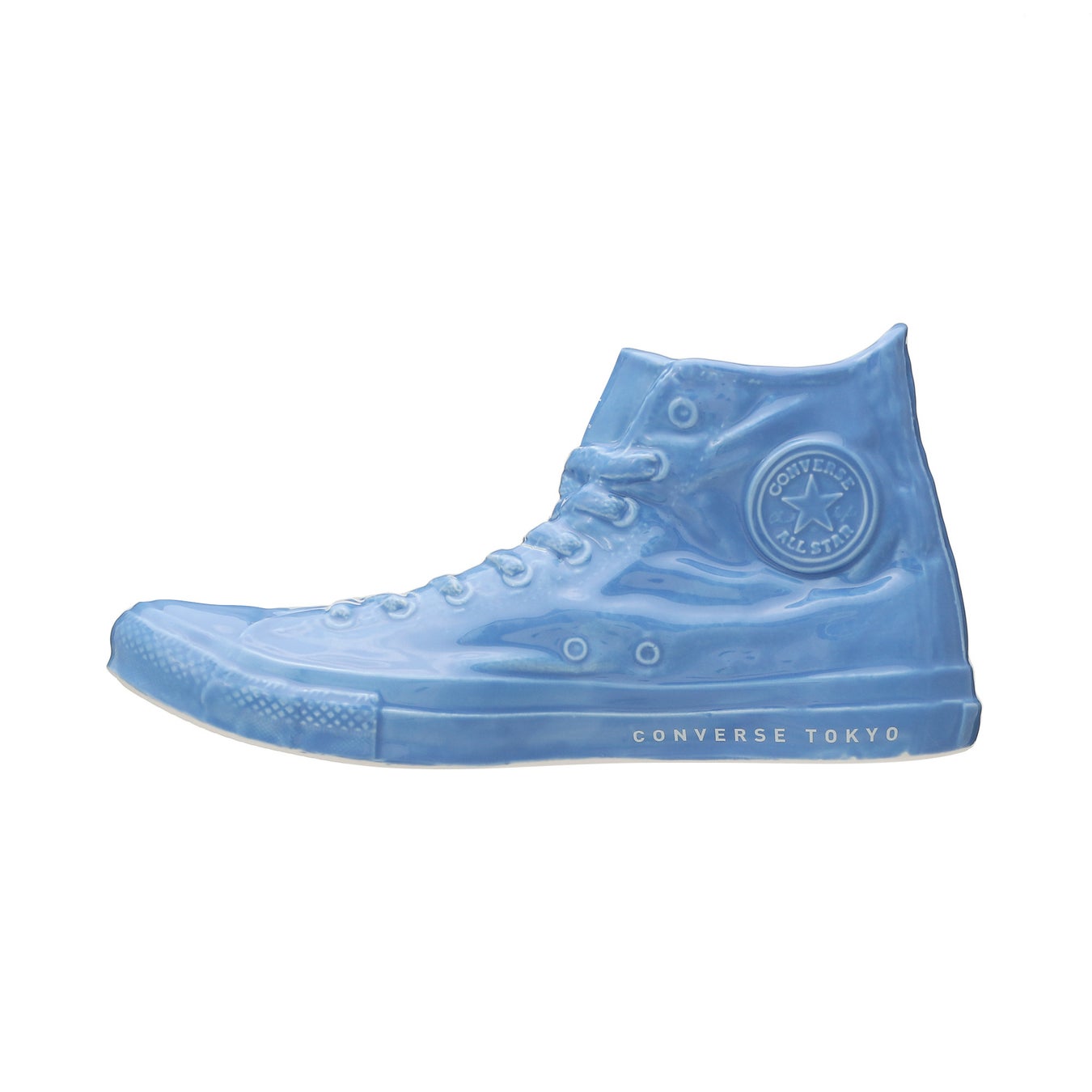 セラミック・ジャパンと.blnkによるフラワーベース。コンバースと聞いて誰もが思い浮かべるほど大人気なALL STARの実際のシューズから原型をとって制作したフラワーベース(花瓶)。タンとテープ部分の外側にはスターバックス リザーブ®ロゴ、内側にはCONVERSE TOKYOロゴを入れています。涼やかなカラーリングは夏のおうち時間をさらに心地よいものにしてくれます。