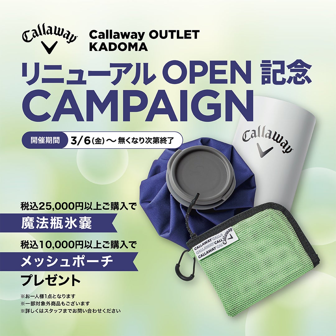 キャロウェイゴルフ株式会社(東京都港区南青山/代表取締役社長:庄司明久)は、キャロウェイアウトレットストア「キャロウェイ アウトレット 門真」を、2026年3月6日(金)三井アウトレットパーク 大阪門真 にリニューアルオープンします。