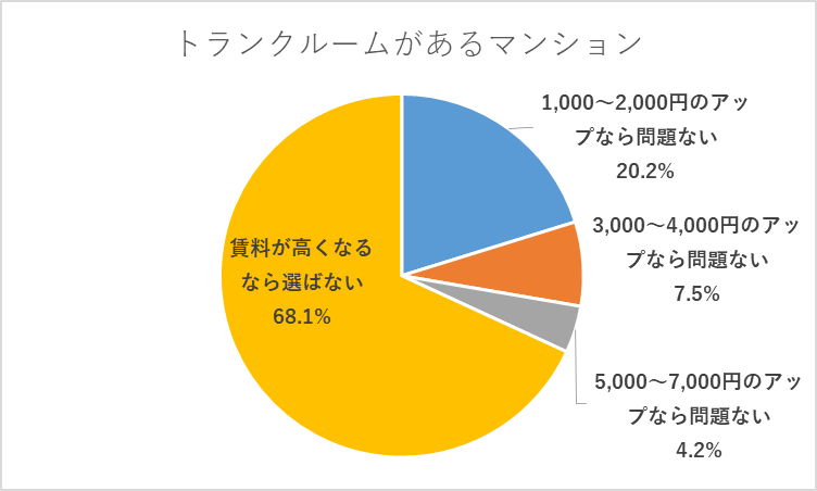 ■エントランス・共用部にトランクルームがあるマンションの場合、どれくらい賃料がアップしても構いませんか?