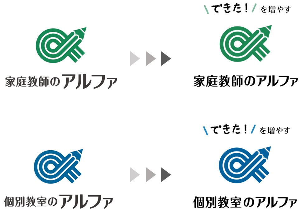 プロ講師による完全オーダーメイド指導の家庭教師や個別教室。勉強嫌い克服・成績アップ・受験対策など、1対1の完全個別指導でお子さまの「できたを増やす」株式会社アルファコーポレーション(本社:東京都豊島区、代表取締役:吉田俊泰)では、この度サービスロゴをリニューアルします!