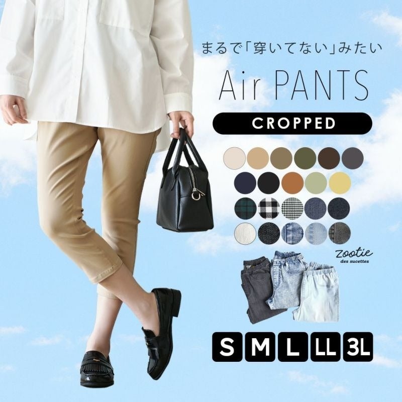 様々なテイストが楽しめる商品の中でも、シンプルでサイズもカラーも豊富なエアパンツテーパードは、いろいろなシーン・テイストで便利に使える定番アイテムです。
