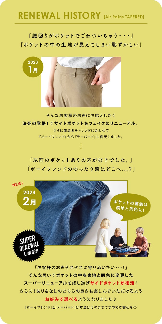 【たかがポケット、されどポケット】ポケありポケなし論争に終止符を!すっきり派もゆったり派も大満足なリニューアルをしたシリーズ累計販売数160万本超えの「エアパンツテーパード」が4月5日に再販!