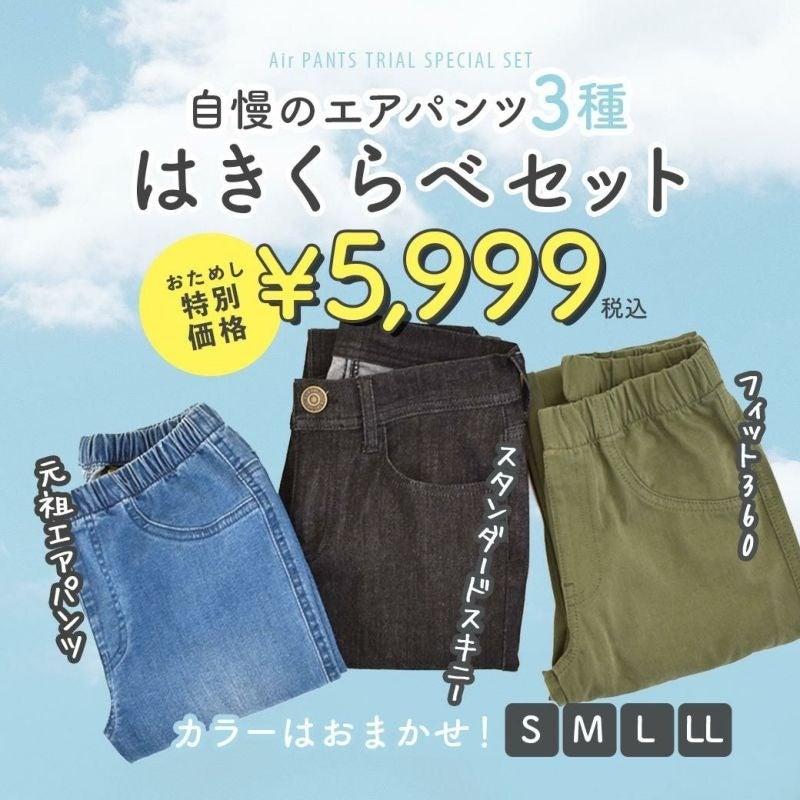 あなたの毎日を変える、ストレスフリーな穿き心地のエアパンツシリーズのラインナップ。