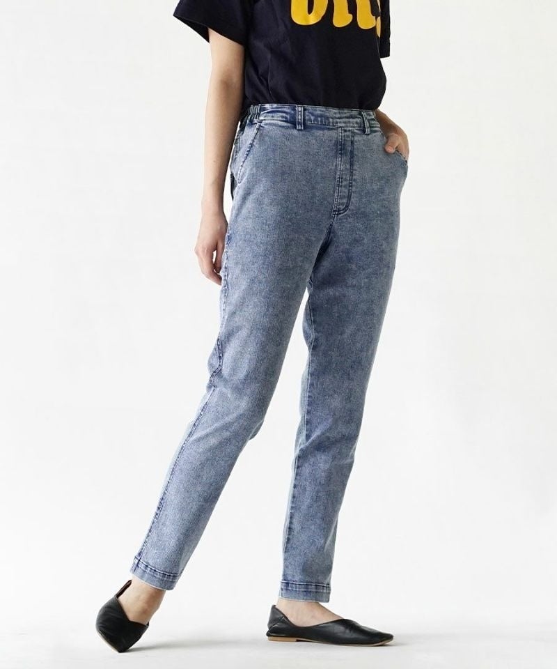 ゆったりとしてきれい見えするシルエットでベルトループが付いたフラットなウエストデザインでタックインしてもコーディネートができるエアパンツテーパードタイプは、ゆったり穿きたいカジュアル派からも、オフィス着としても着たいきれいめ派からも大人気商品に。