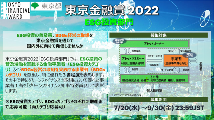 東京都主催:東京金融賞 ESG投資部門 事業者の募集を開始しました!