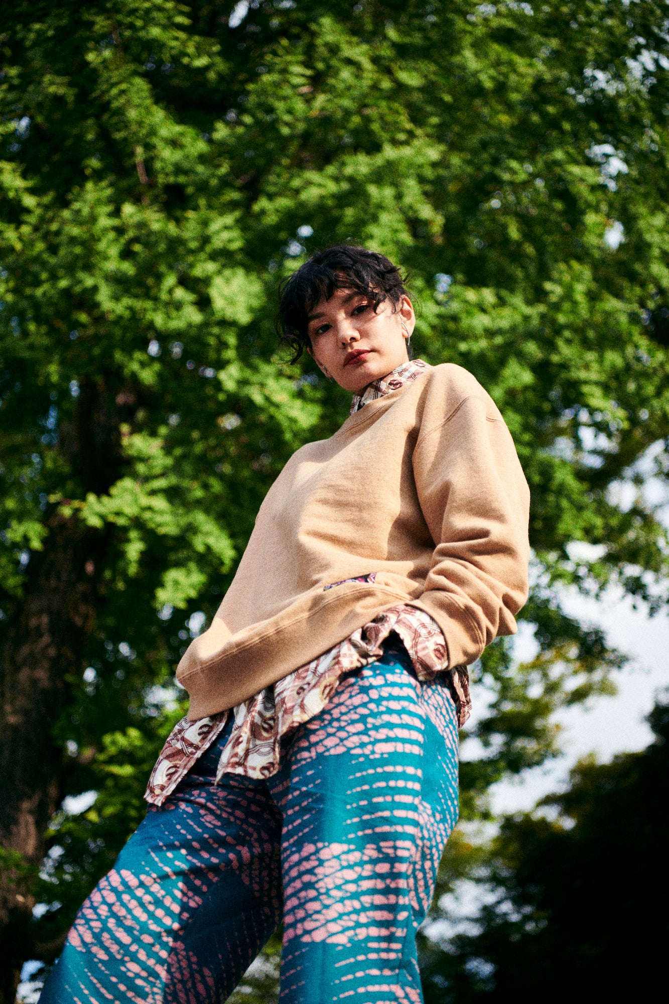 下半身のラインを拾わずイージーにはけるラフなシルエットと個性的な柄を組み合わせた、雰囲気のあるパンツ。存在感のあるバブルワックスプリントは、トップスを選ばすどんなコーディネートにもマッチします。