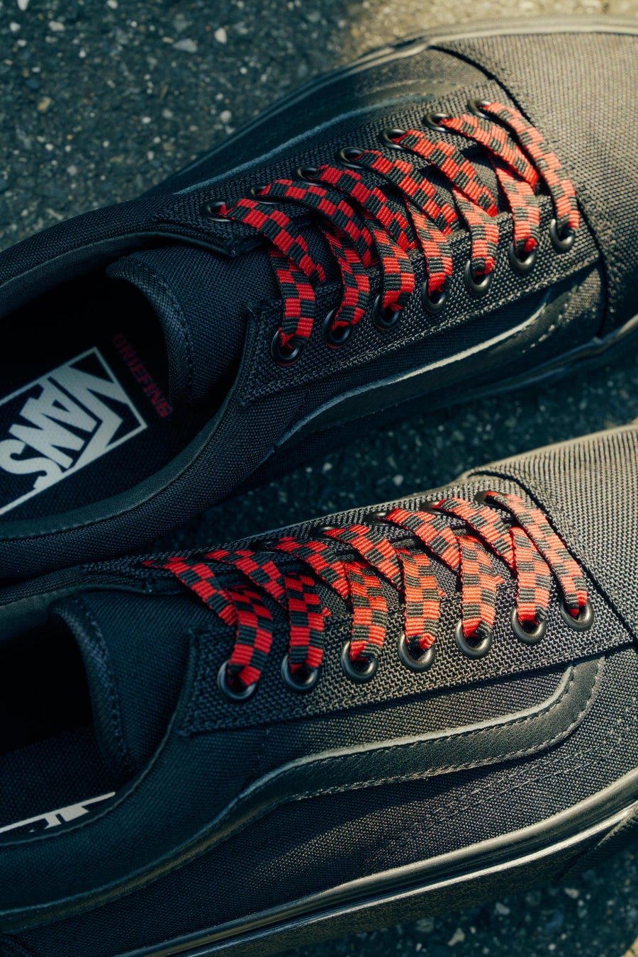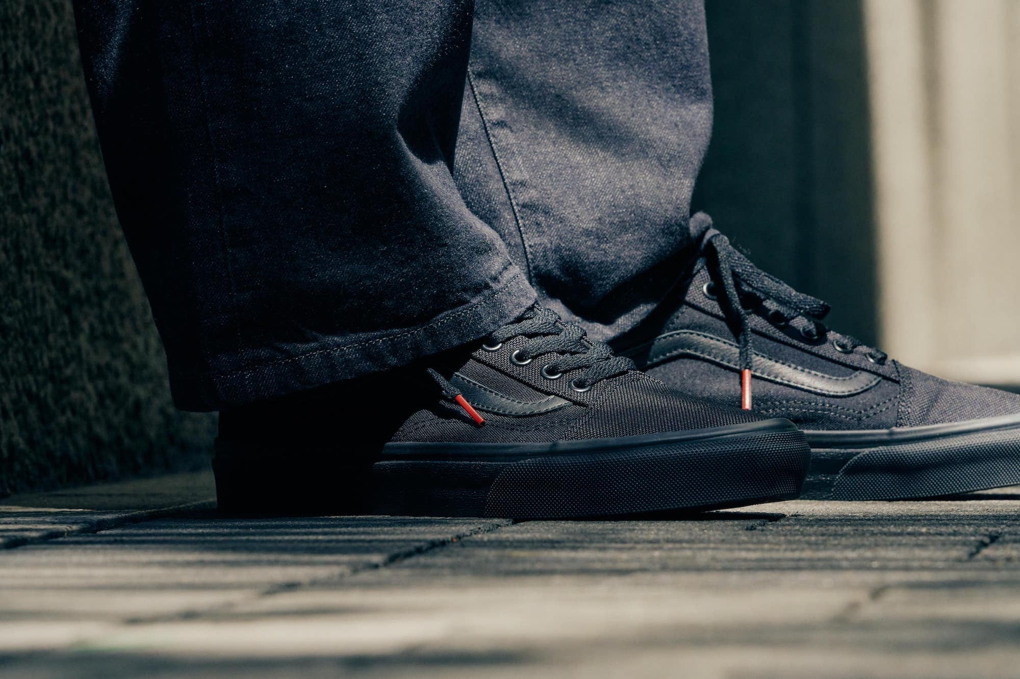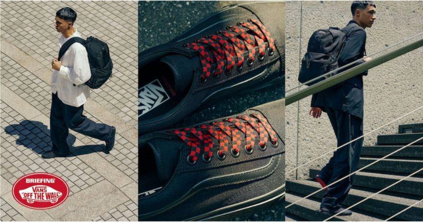 今回は、アクションスポーツフットウェア&アパレルブランド「VANS (ヴァンズ)」との初コレボレーションシューズをリリース。「アメリカ」をルーツに持つ両ブランドが初コラボレーションアイテムとしてセレクトしたのはジャズストライプというアイコンが搭載されている「OLD SKOOL(オールド スクール)」。アッパー素材にはBRIEFINGではおなじみの500D(デニール) CORDURAナイロンと、CORDURA AIR BARISTICを使用しタフなブランドの世界観の落とし込みを実現しました。ブラックカラーとレッドカラーの印象にふさわしい耐久性のある素材を使用する事でBRIEFINGブランドのイメージを伝えることの出来るデザインを意識しました。