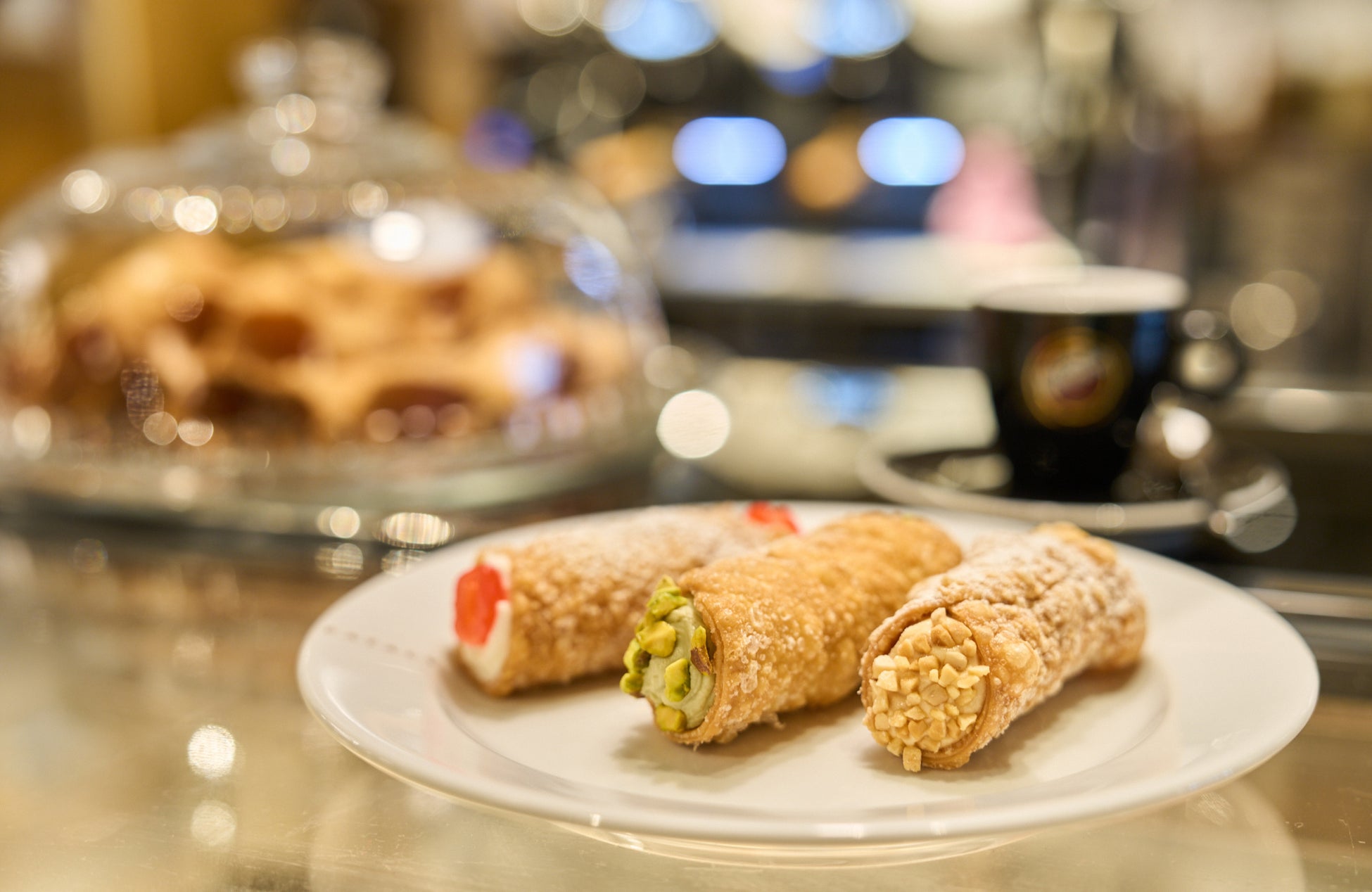 カンノーリはシチリア発祥の伝統菓子。イータリー銀座店では、これから1年を通して、100種類のカンノーリを展開します。 第一弾として8月25日(木)から9月19日(祝・月)まで、3種類のクリーム(クラシッコ・クレモーゾ、ピスタチオ、キャラメル・サーレ)に5種のトッピング(チョコレート、ピスタチオ、アーモンド、オレンジピール、ドレンチェリー)をご用意します。