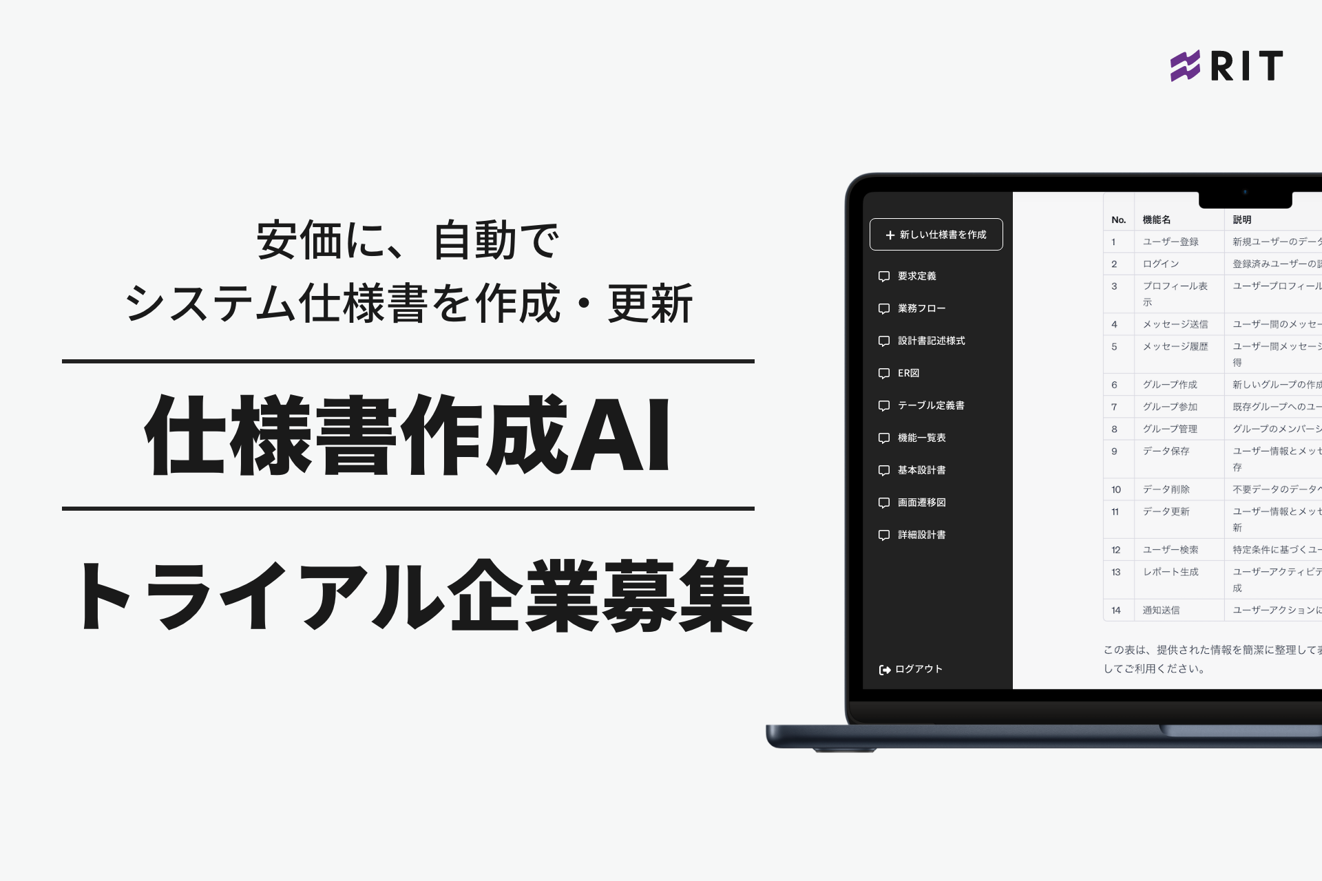 現在、RITはプロトタイプの開発を進めており、システム仕様書の作成において実践的な課題を解決するため、トライアル企業を募集しています。