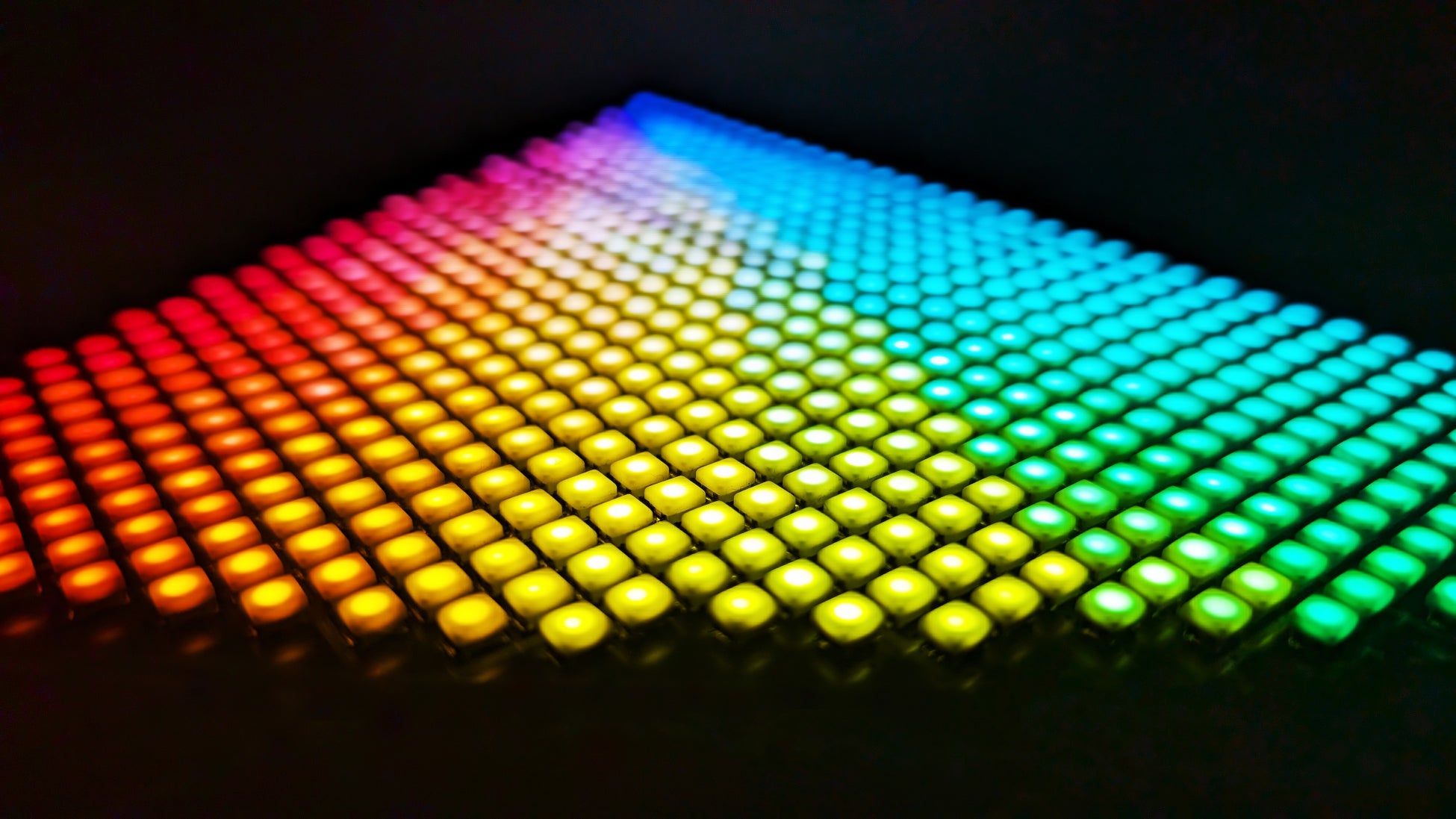 ONTELOPEで開発した「ONTELOPE Glass」は、虹色のグラデーションに光るLEDをメガネのフレームの内側に配置しており、「ONTELOPE Glass」に内蔵された超小型マイクが周辺の音を感知し、その音を光の色合いや明暗、グラデーションで可視化するデザインとなっています。このLEDの選定にあたり、フルカラータイプのLEDではLED自体の大きさや消費電力の面が課題となっていましたが、自動車の内装照明用向けで培った「ASA COLOR LED®」の細かな調色技術を活かし、ONTELOPE Glassに必要不可欠な色合いの違う44個の小さなLEDによって、虹色のグラデーションによる表現を可能にしました。