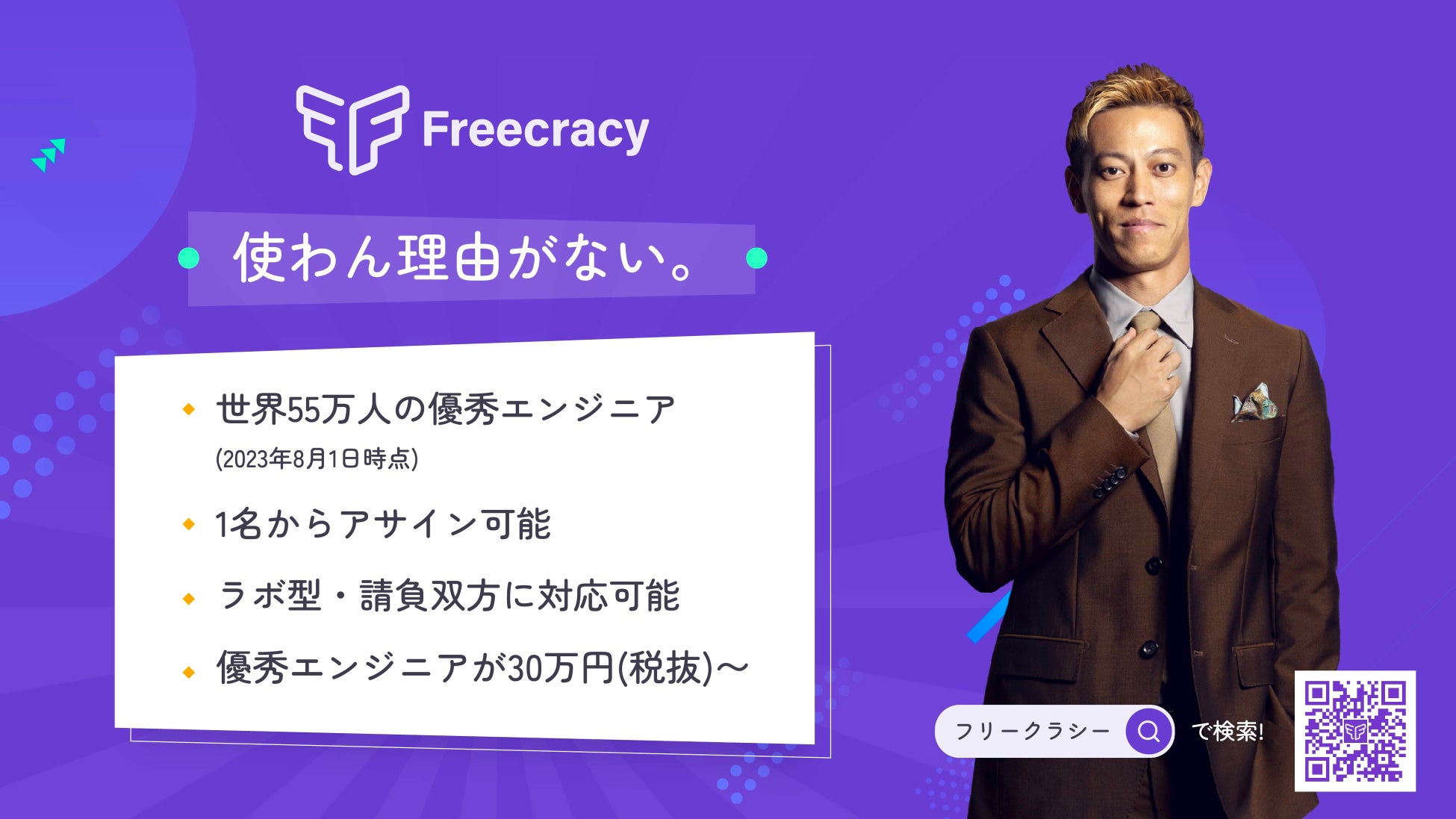 私たち、Freecracyは55万人という圧倒的なDX人材プラットフォームを、エンジニア競争力のある東南アジアで保有しており、この中から本当に優秀な方々に日本のIT業界を支え、成長させてもらいたいと考えております。