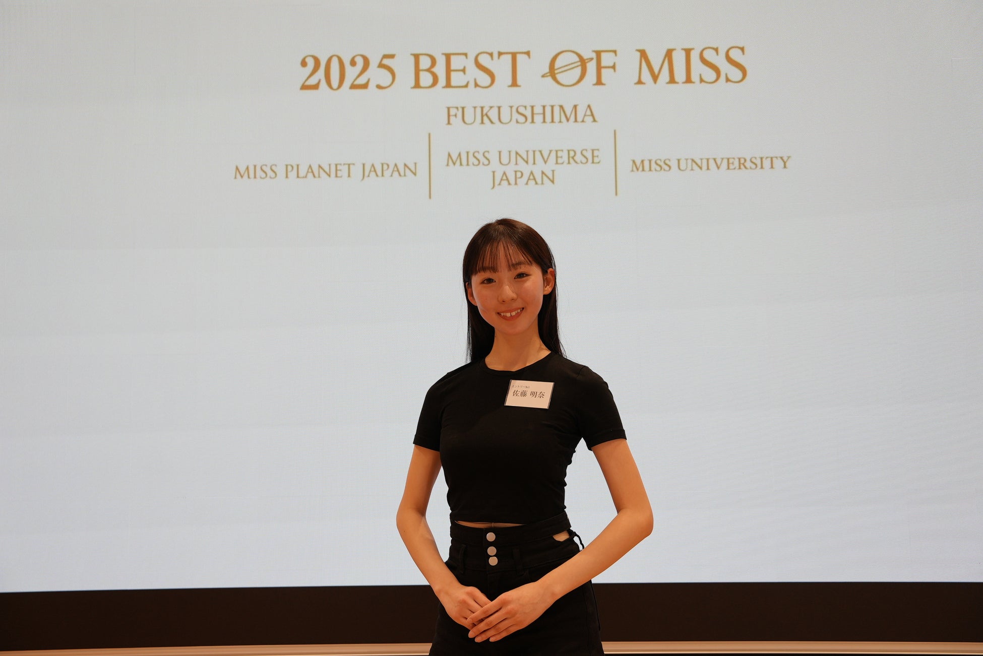 2025 Miss Universe Japan プレリミナリー福島代表に福島県二本松市出身の佐藤 明奈(めいな)さんが選出されました。