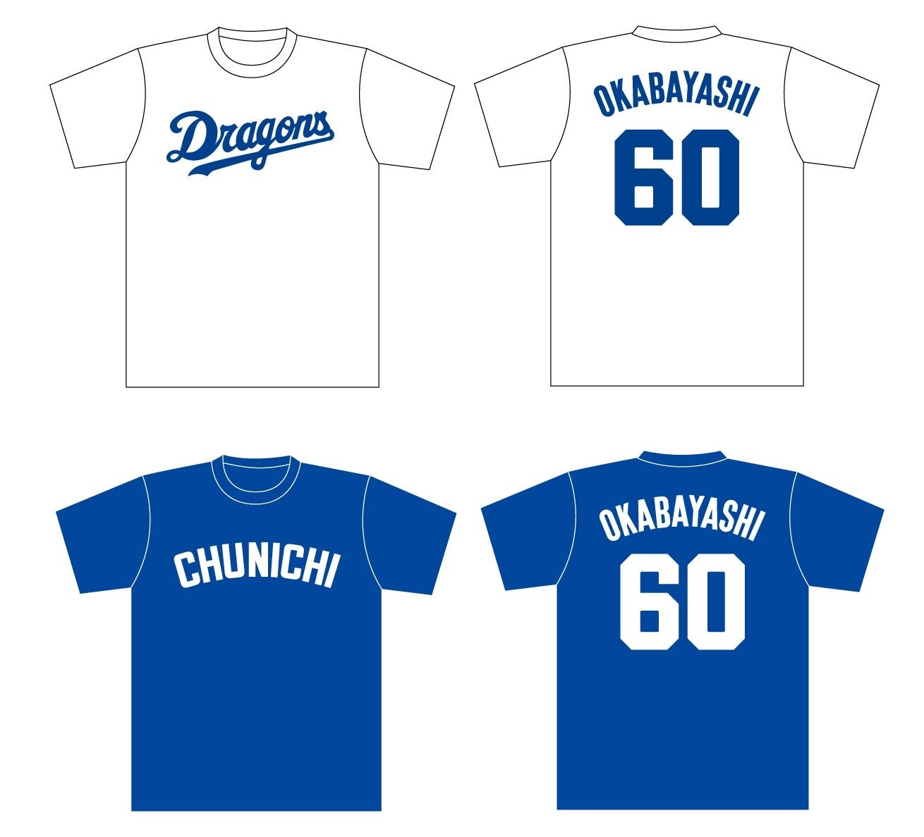 ▶岡林選手 ナンバーTシャツ ホーム・ビジター フリーサイズ(各種・税込2,546円)
