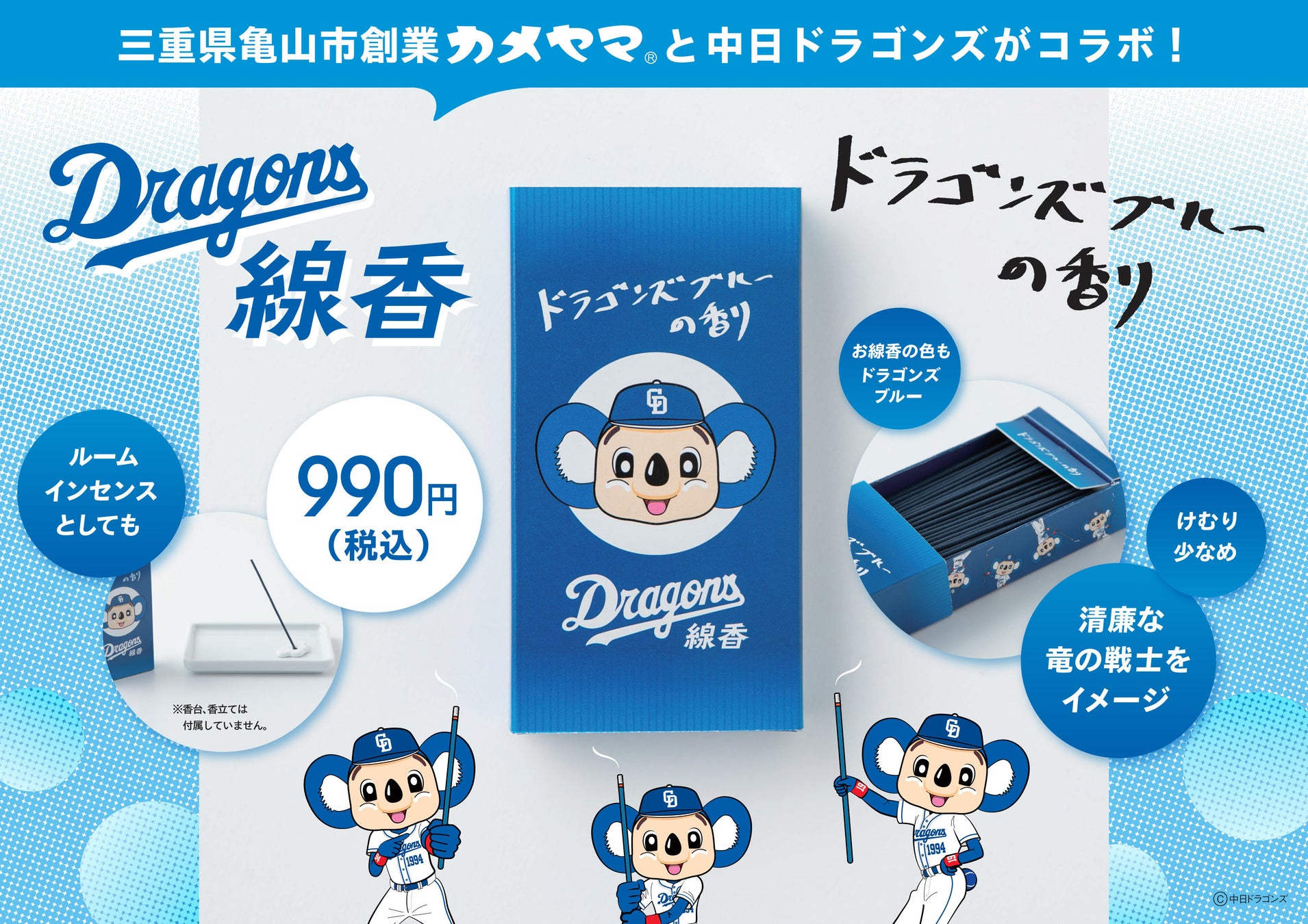 三重県亀山市「カメヤマ」とコラボ 「ドラゴンズ線香」