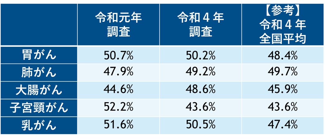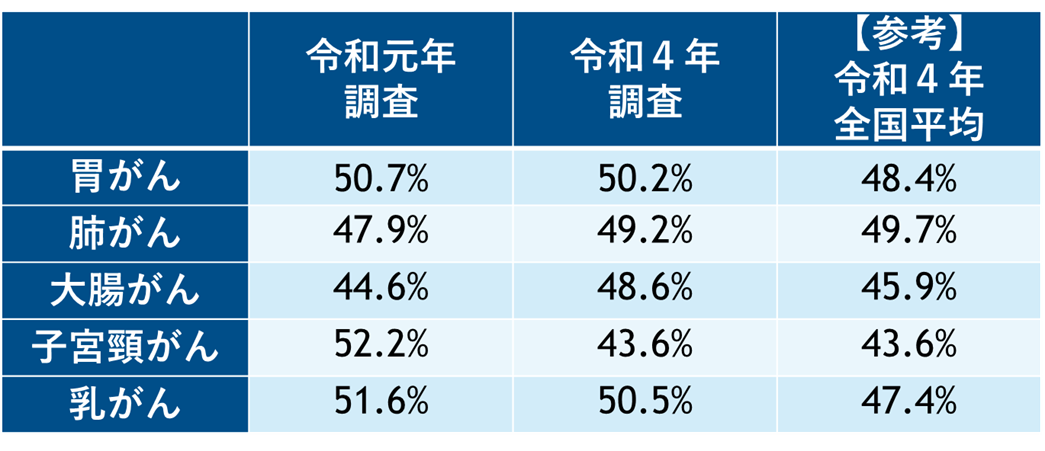 国のがん対策推進基本計画(第4期)では、がん検診受診率を60%まで引き上げることを目標にしています。