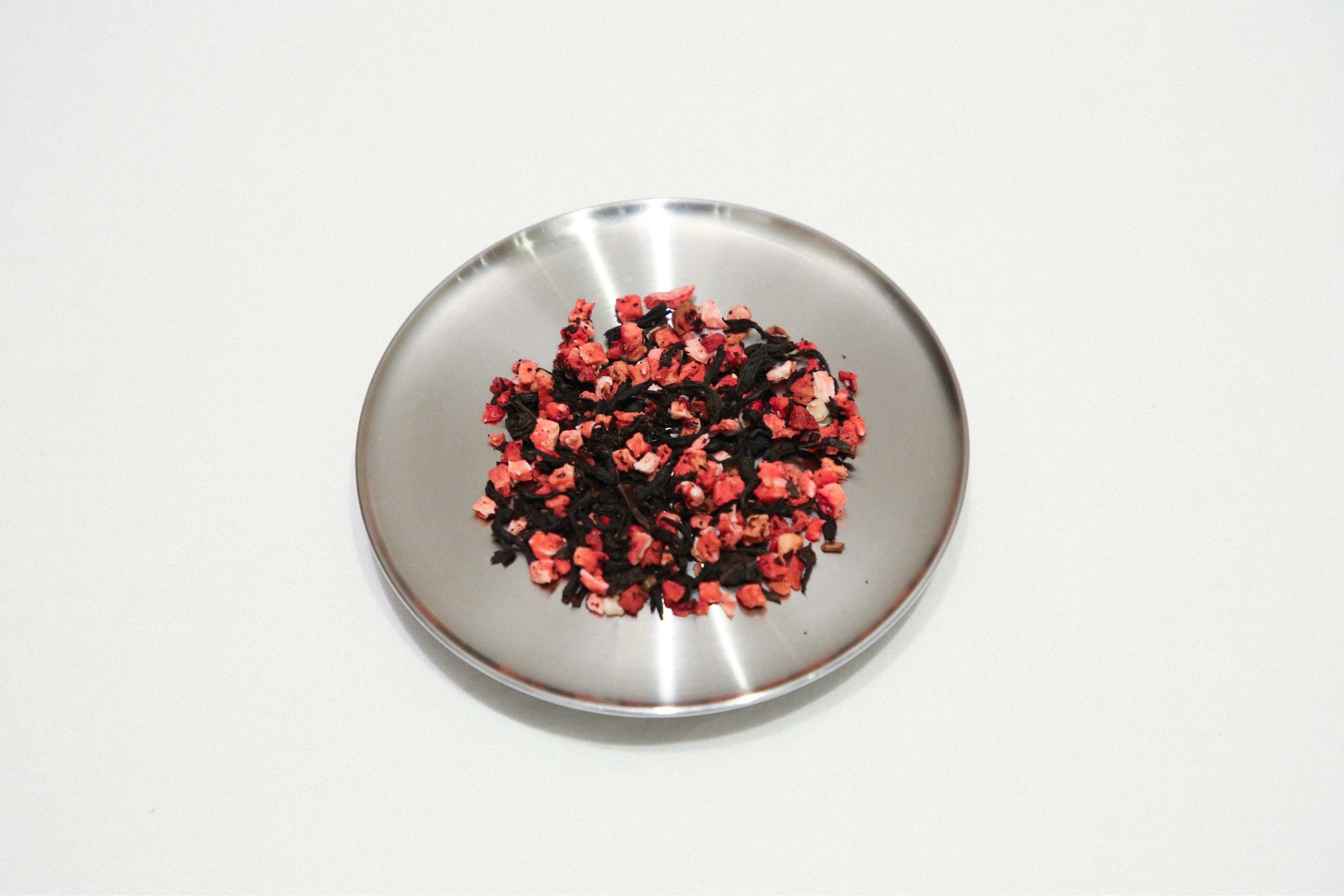 静岡・本山地域にある日向地区(標高634m)で生産された和紅茶をベースに、フリーズドライのイチゴと”カカオハスク”というカカオの殻をブレンドし、イチゴのフレッシュな風味とチョコレートの風味を再現しました。チョコとイチゴをしっかり感じながらもすっきりとした味わいをお楽しみいただけるブレンドで、イチゴを使用したタルトとの組み合わせがおすすめです。