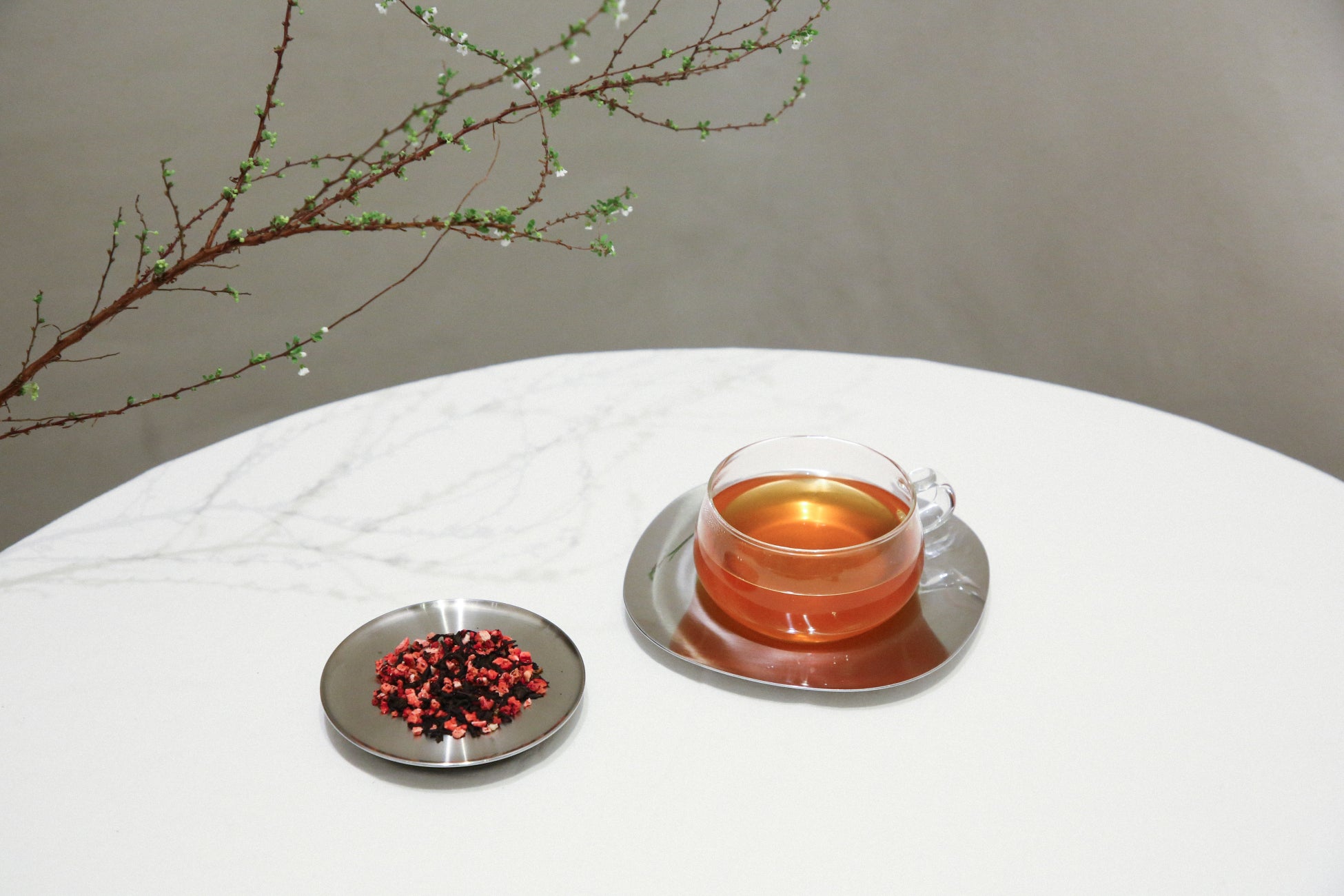 春のお茶はそんな芽吹きの春と、キル フェ ボンを代表するフルーツタルトを彩る華やかな果物をイメージしてブレンドしました。長い長い冬を超え、暖かな春が来ると蓄えていた力をパッと解き放つ、そんな情景をぜひお茶とともに感じてみてください。