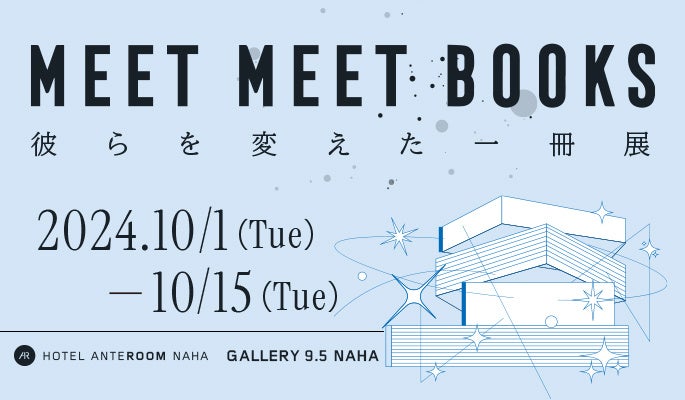 ホテル アンテルーム 那覇(沖縄県那覇市前島3丁目27番地11 運営会社:沖縄UDS株式会社、代表取締役:片桐雄一郎)2階ギャラリー「GALLERY 9.5 NAHA」では、沖縄県内外で活躍する11名による書評展「MEET MEET BOOKS 彼らを変えた一冊展」を開催いたします。