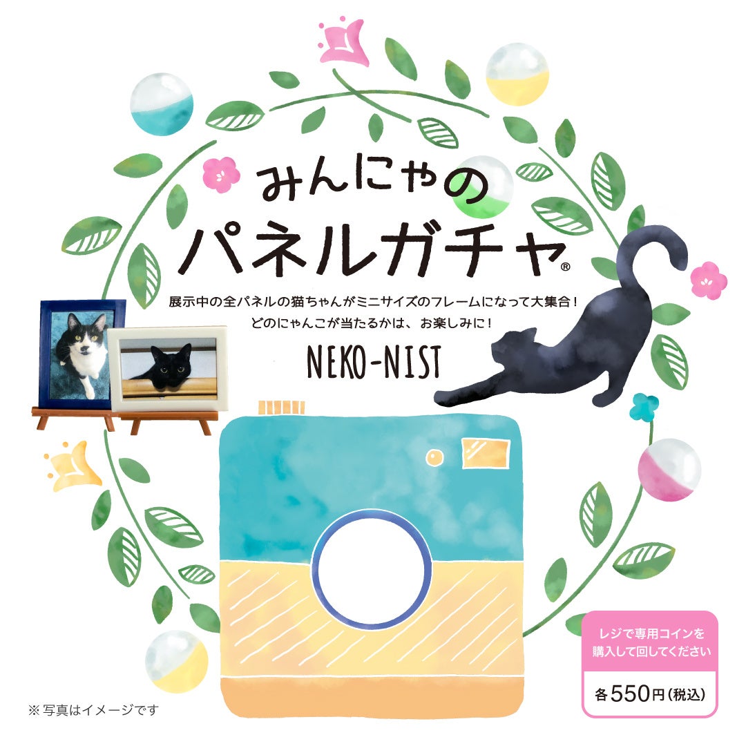 さらに、ねこにすとでの人気企画「みんにゃのパネルガチャ」も復活開催!展示中の全猫写真パネルがミニフレームになって大集合!どの猫ちゃんが当たるかは、お楽しみ!一切、ハズレなしです。