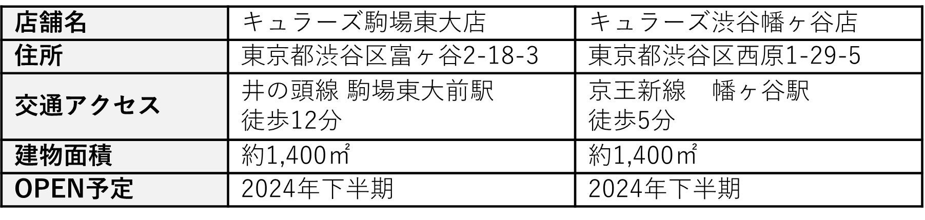 キュラーズ、新たに2店舗「駒場東大店」「渋谷幡ヶ谷店」が2024年にOPEN予定!