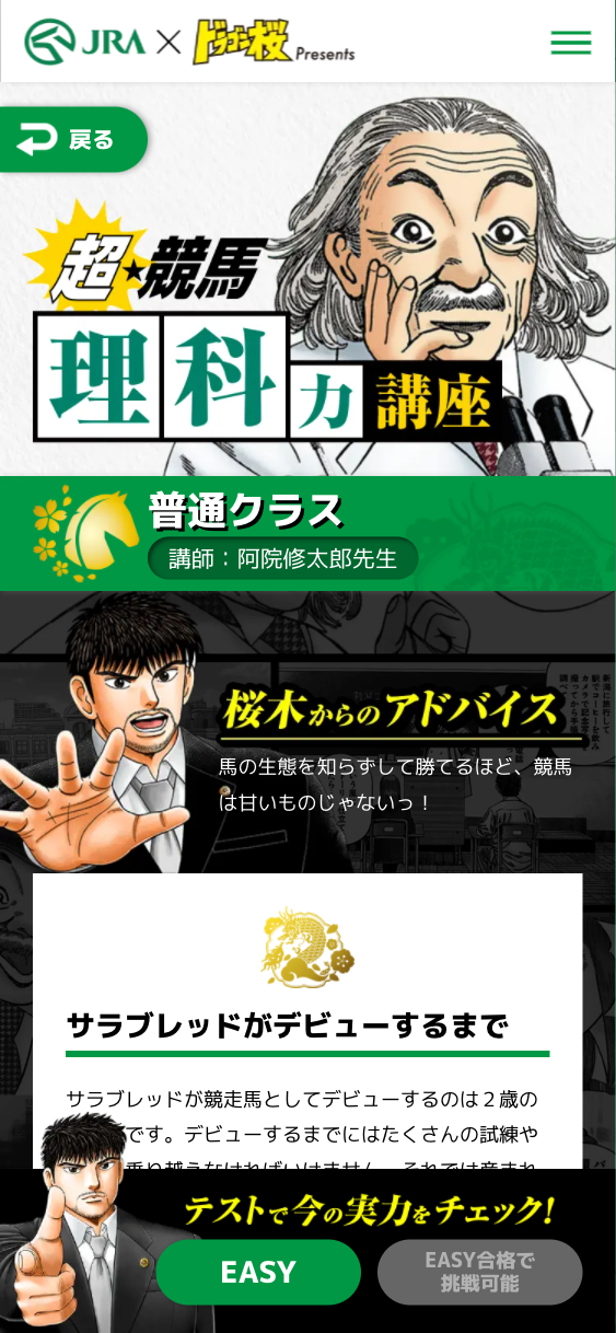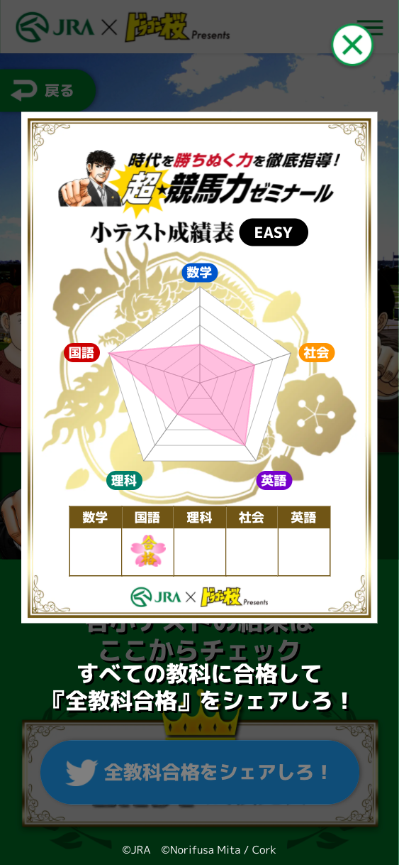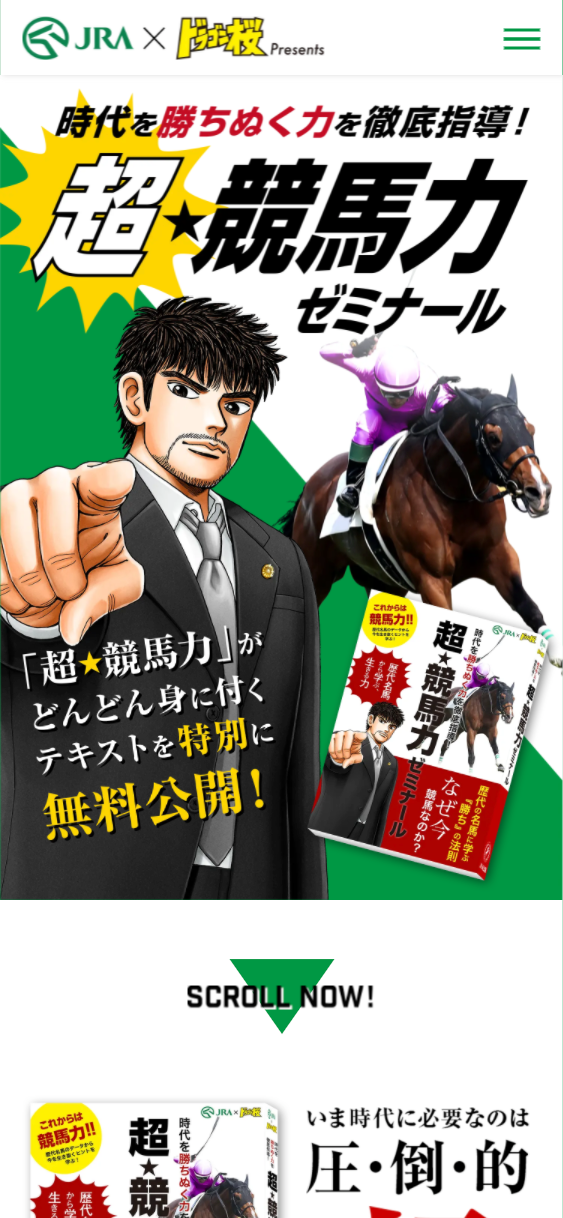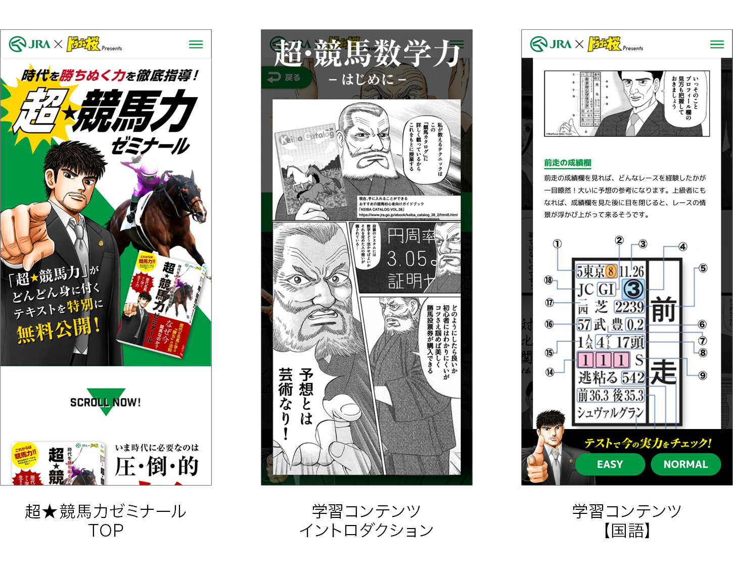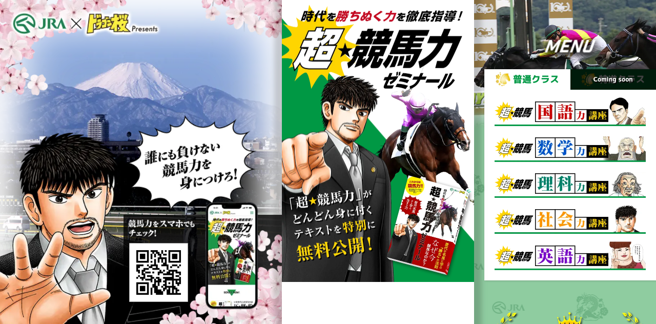 日本中央競馬会(※以下、JRA)は、三田書房による人気漫画「ドラゴン桜」とコラボレーションし、「ドラゴン桜」に登場する桜木先生を始めとする優秀な講師陣たちが、馬や競馬について徹底指導する特別講座「超・競馬力ゼミナール」を12月20日15時00分より公開いたします。
