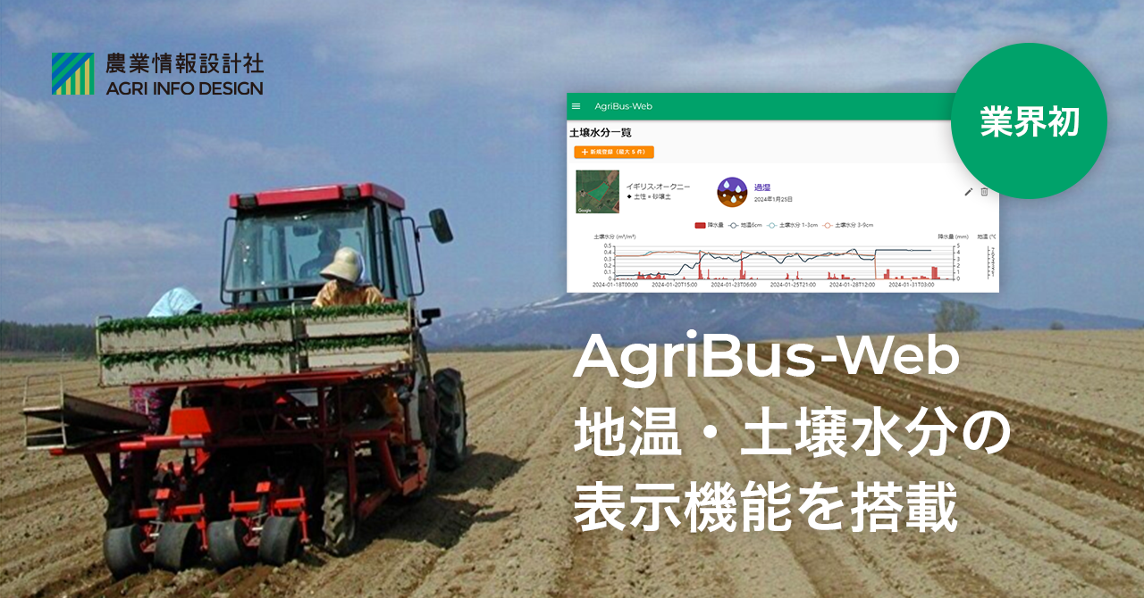 世界トップシェアのトラクター用GPSナビアプリ「AgriBus-NAVI」のWeb管理画面「AgriBus-Web」で業界初(2024年3月自社調べ)の地温・土壌水分の表示機能を搭載