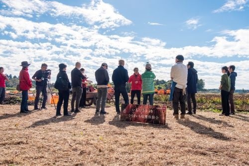 続いて、野島主任は「今後ますます多くのお客様とオフラインでの接点を作り、かいつかのファンづくりに努めていく」と話しました。「体験会」では、収穫機械の撮影も実施しました。