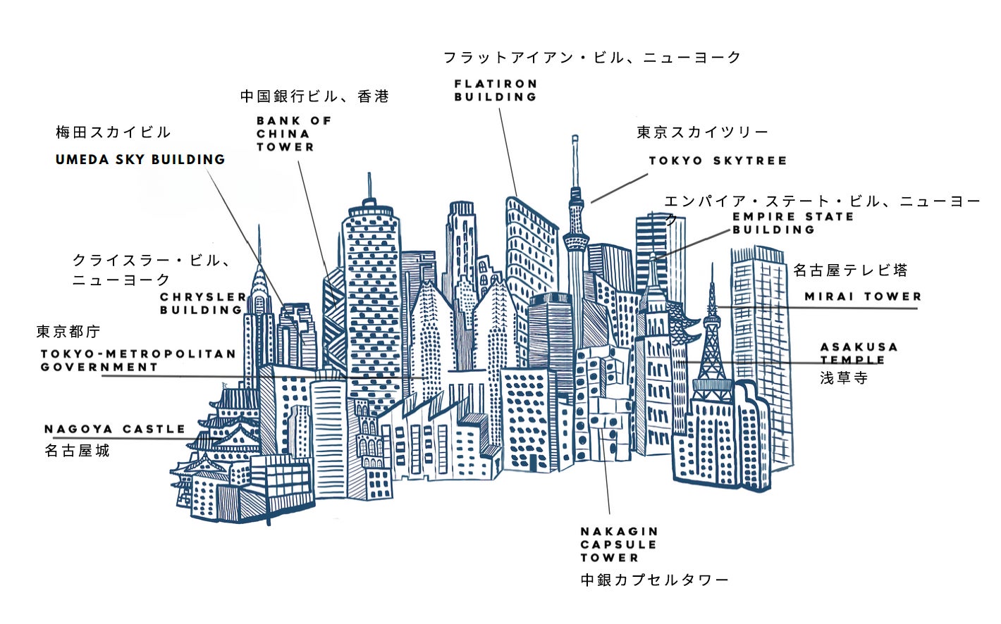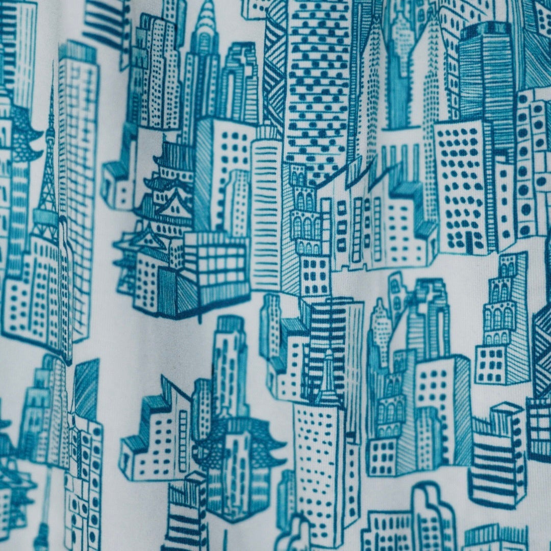 世界中の象徴的な建物を一つのシームレスな世界に共存させた、マリヤ・ピンユー氏による作品。人々が訪れた、あるいは暮らしたことのある街の記憶を呼び起こすようなグローバルな繋がりを表現しました。最新のデジタルプリント技術を用いることでイラストの繊細なラインが表現可能となり、かつ製造過程での環境への負荷も軽減しました。国や場所による境界はないというメッセージを肌で感じてください。