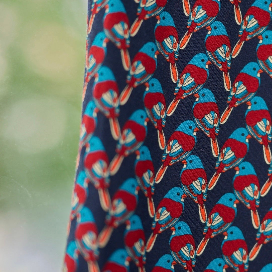 大空を自由に舞う鳥のモチーフを繰り返す、この遊び心あふれるプリントは、境界を持たない自由な想像力を象徴しています。国境や地理的な制約を気にすることなく、どこまでも飛び続ける鳥たちのように、私たちのアンダーウェアやラウンジウェアは、身につける方がグローバルな繋がりや創造性、そして無限の可能性を秘めた、自由な生き方を謳歌できるよう願いを込めています。今季の新作カラーとの調和を意識した配色で、コーディネートの幅を広げます。