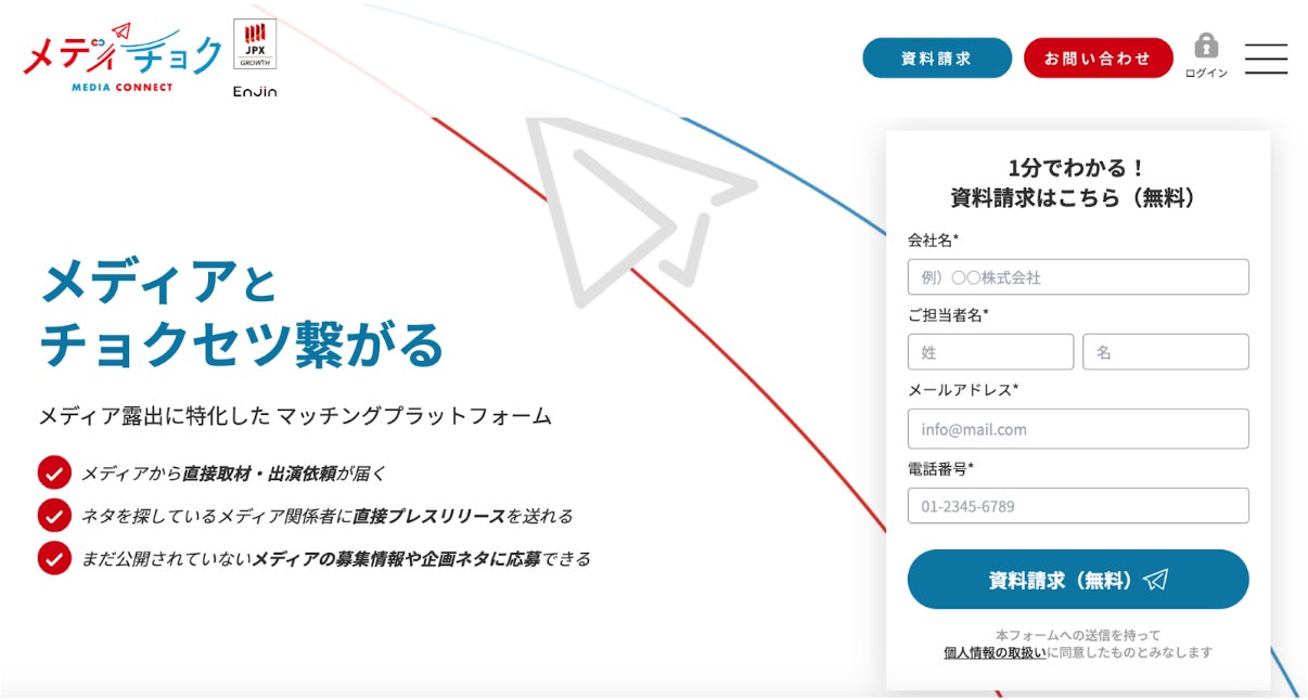 メディチョクは、常に良質な情報を収集しているメディア担当者と、広報活動において重要なメディアリレーション業務の強化を図るユーザーをつなぐサブスクリプション型のプラットフォームサービスです。(メディア担当者は利用料無料)