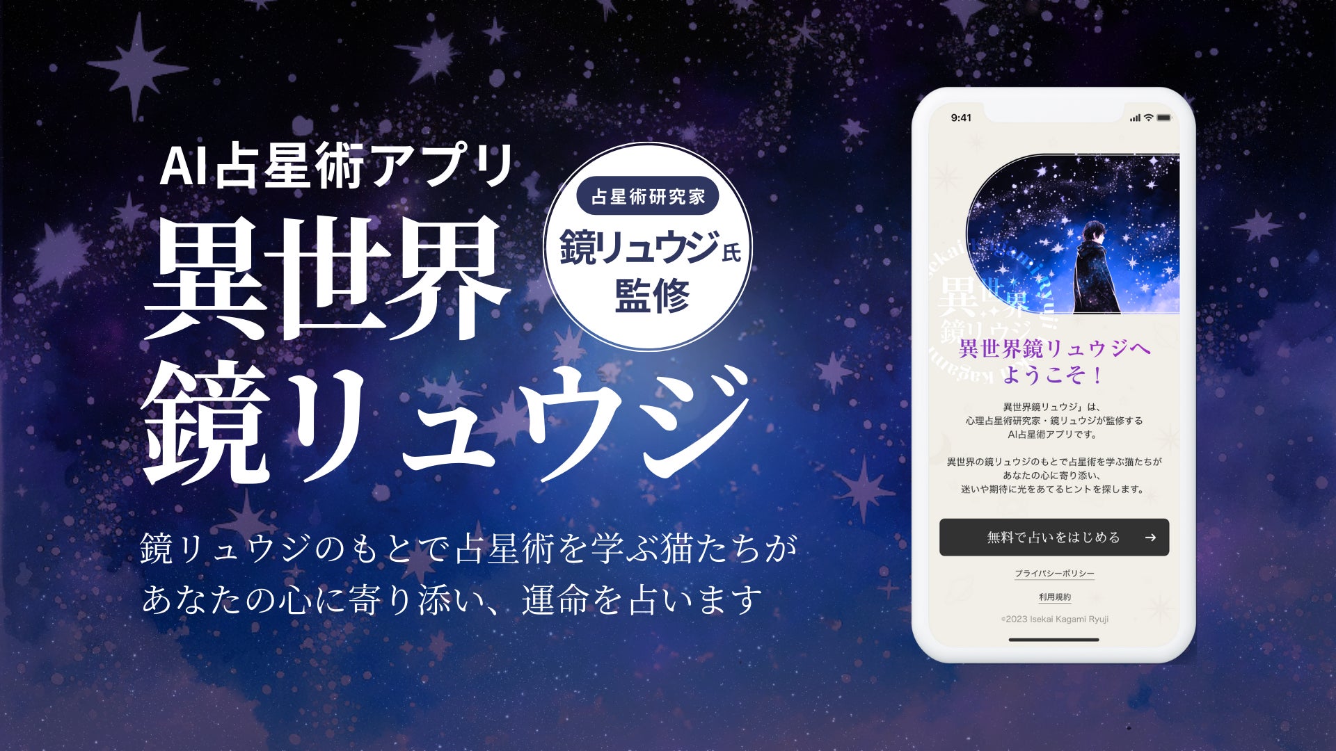 株式会社メンヘラテクノロジー(所在地:東京都渋谷区、 代表取締役:高桑蘭佳)は、2023年12月26日(火)に、占星術研究家・鏡リュウジ監修のAI占星術アプリ『異世界鏡リュウジ』をリリースしました。本アプリは米OpenAI社のChatGPTを使用することで、従来の占いコンテンツよりも自由度が高く、パーソナライズされた占いを提供します。また、本リリースと併せて、年末年始限定占いメニュー「星読みの森からの手紙2024」の申し込みを開始しました。新たな年を迎えるこの時期に、本アプリで特別な体験をお楽しみください。