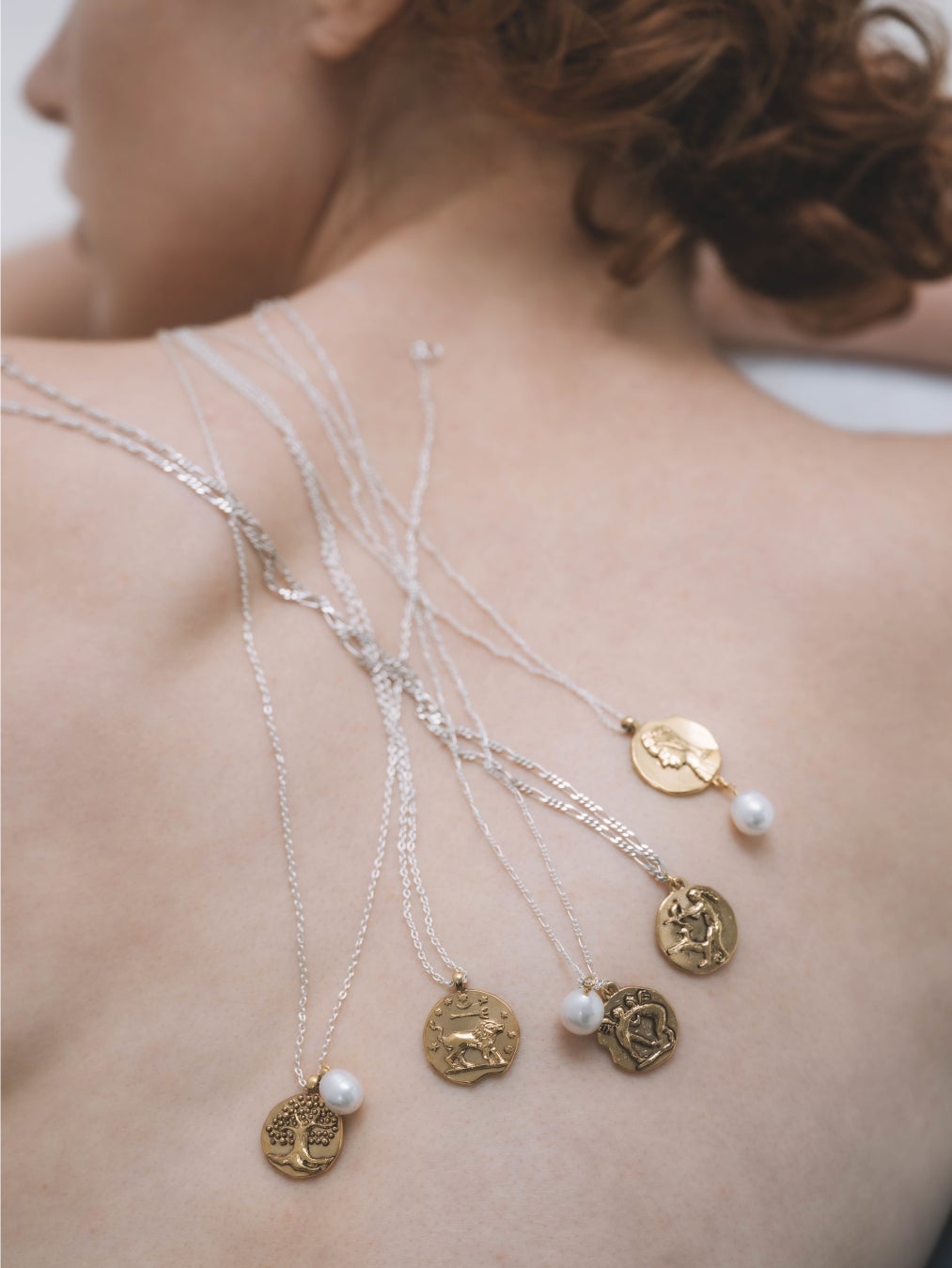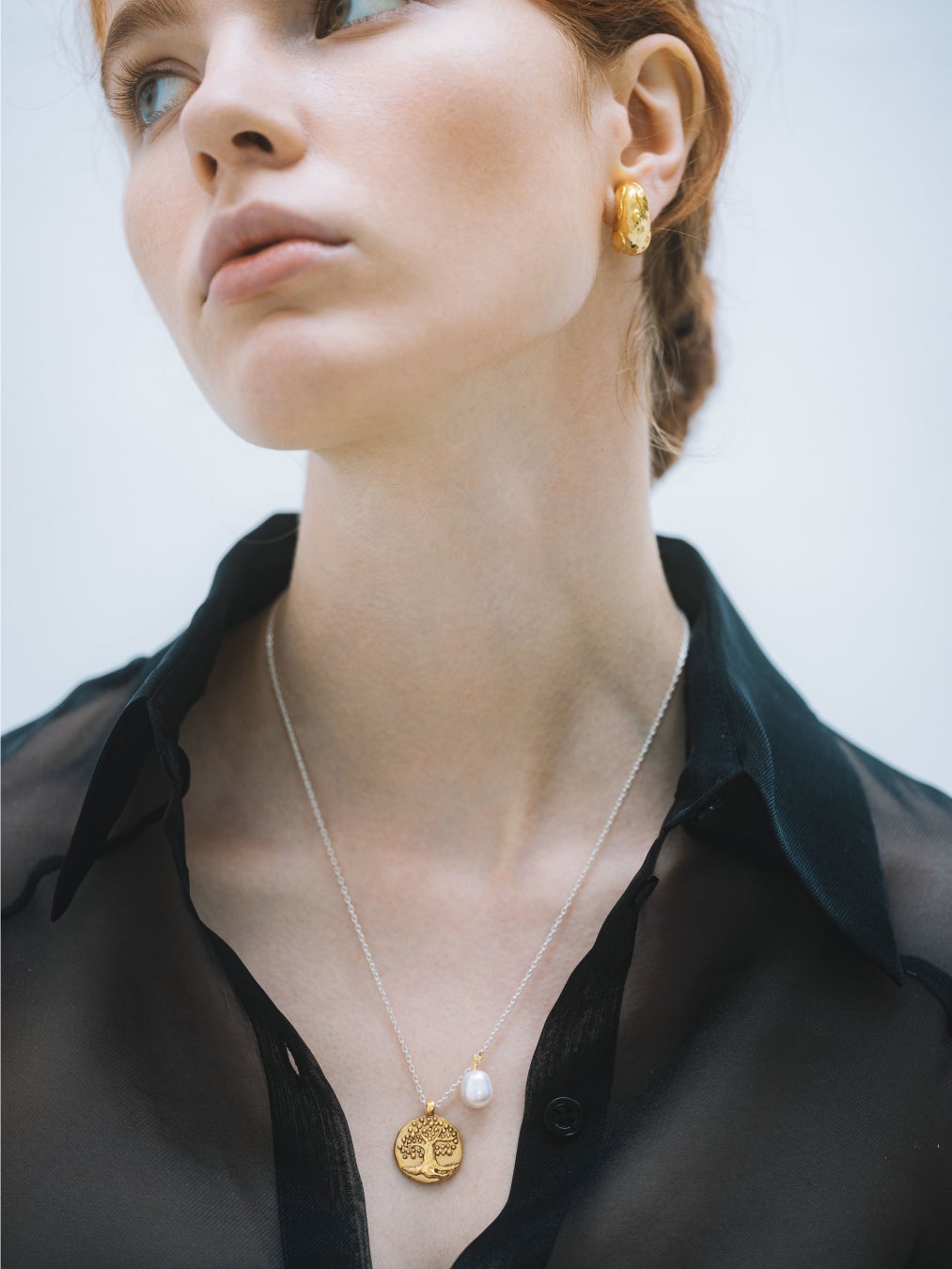細かい小判型のシルバー925製チェーン、天然のバロックパールをひと粒添えることで、シックな中に可憐な雰囲気を感じることができます。