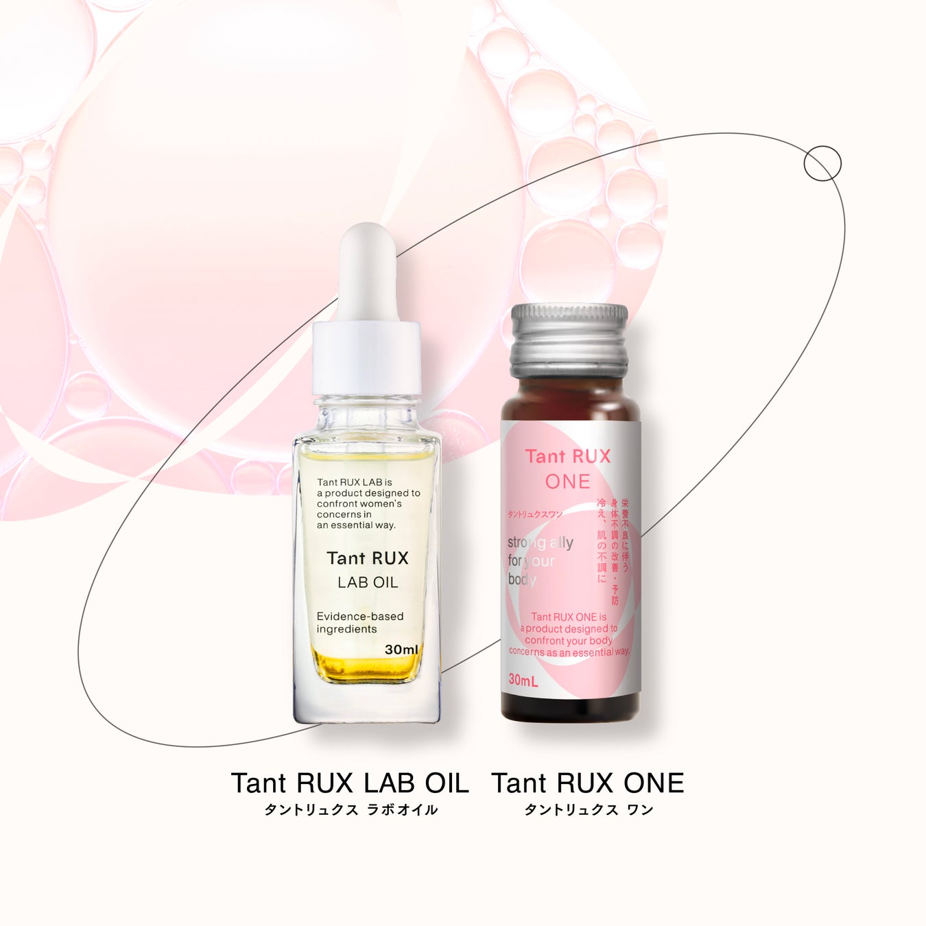 まずはフェムケアオイル「Tant RUX LAB OIL」、飲むフェムケアドリンク「Tant RUX ONE」の2商品を展開。Tant RUX LABラインが、すべての女性の人生をより健やかに、より美しく変えていきます。
