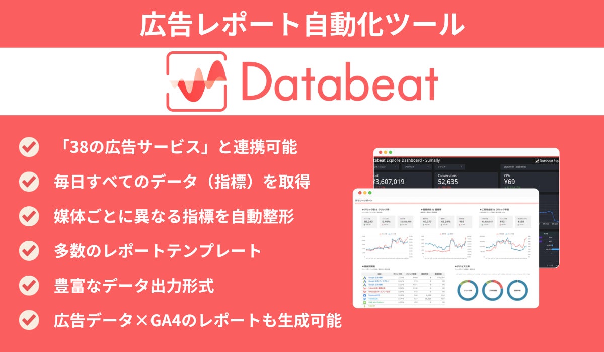 アジト株式会社が開発・提供する広告レポート自動化ツール「Databeat」