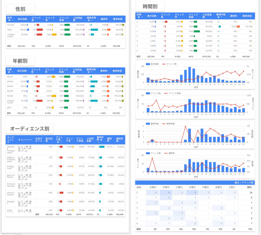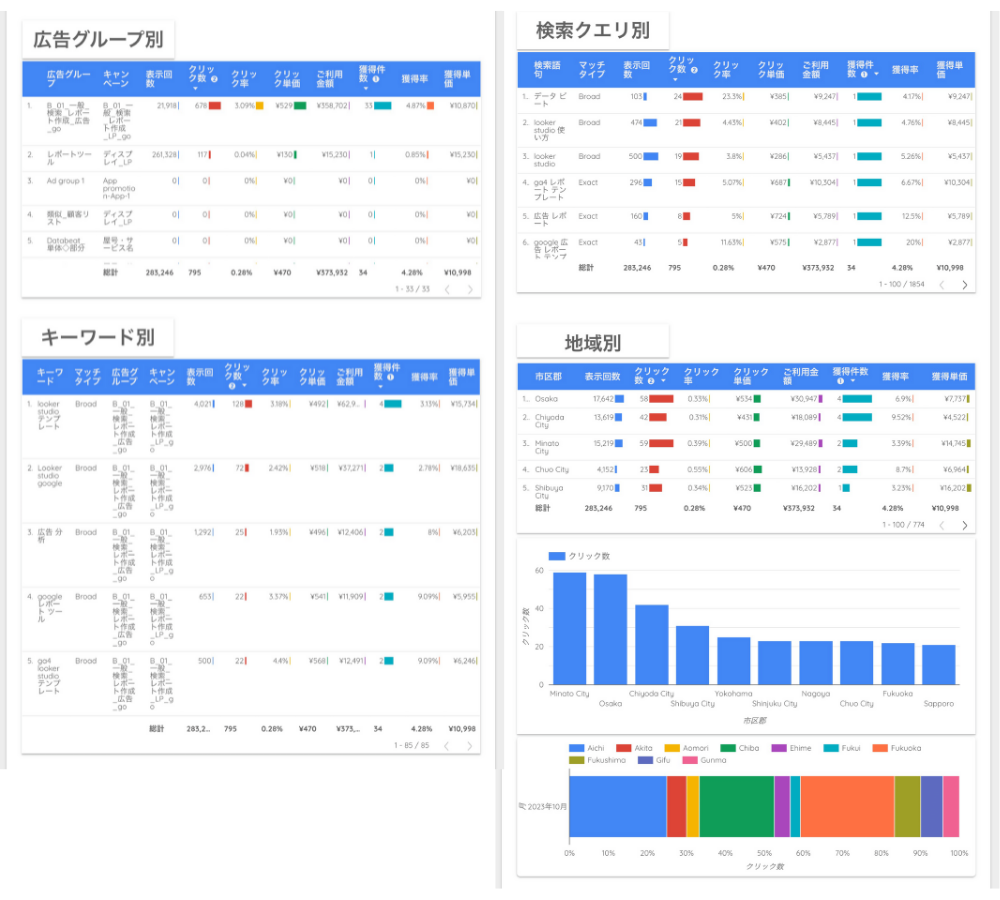 スマホ用Google広告版Looker Studio無料テンプレートで閲覧できる情報