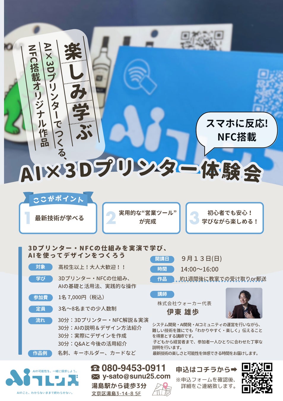 株式会社ウォーカー(本社:東京都文京区、代表取締役:伊東雄歩)は、AIと3Dプリンター、そしてNFCチップを活用し、誰でも簡単に“スマホでリンクが開く”オリジナルグッズを作れる最先端のものづくりワークショップ『AI×3Dプリンタ体験会』を開催致します。