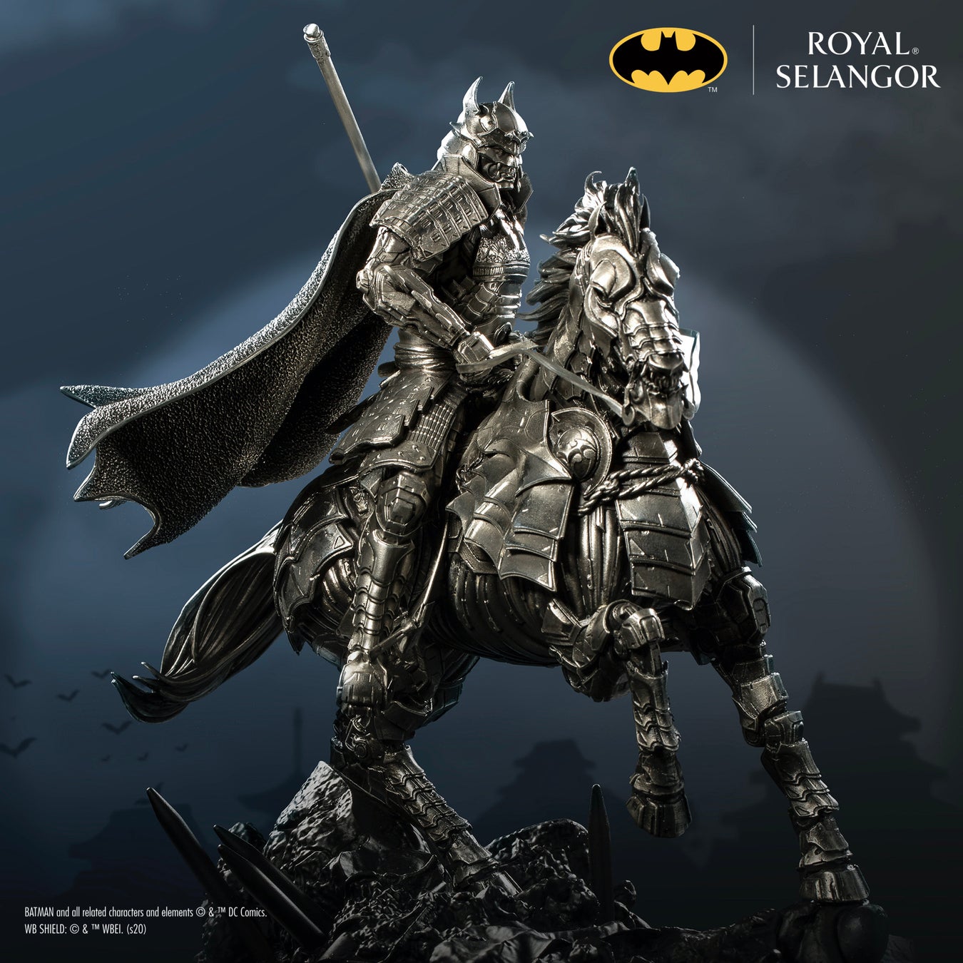 “The Dark Knight of The Rising Sun”。日本の戦国の世を駆けるダークナイトの姿を描いたスペシャルモデル「バットマン ショーグン」が誕生しました。シンガポールのXMスタジオが手がける迫真のオリジナルデザインと、ロイヤルセランゴールが誇る王室御用達ピューター造形のコラボレーションによる稀少なコレクターズアイテムです。バットマンエンブレムが刻まれた兜、甲冑と化したスーツ、鈍色のマントを纏う手には長槍“バットスピアー”。同じく甲冑を装備する騎馬に至るまで、日出る国の誇り高き戦いの魂が宿ります。超精巧な造形と重厚な存在感、そしてエイジングを重ねる深い煌めき。100年先へと輝き続けると言われる不朽のピューターアートは、日本のバットマンファンにこそ贈りたい至高の逸品です。