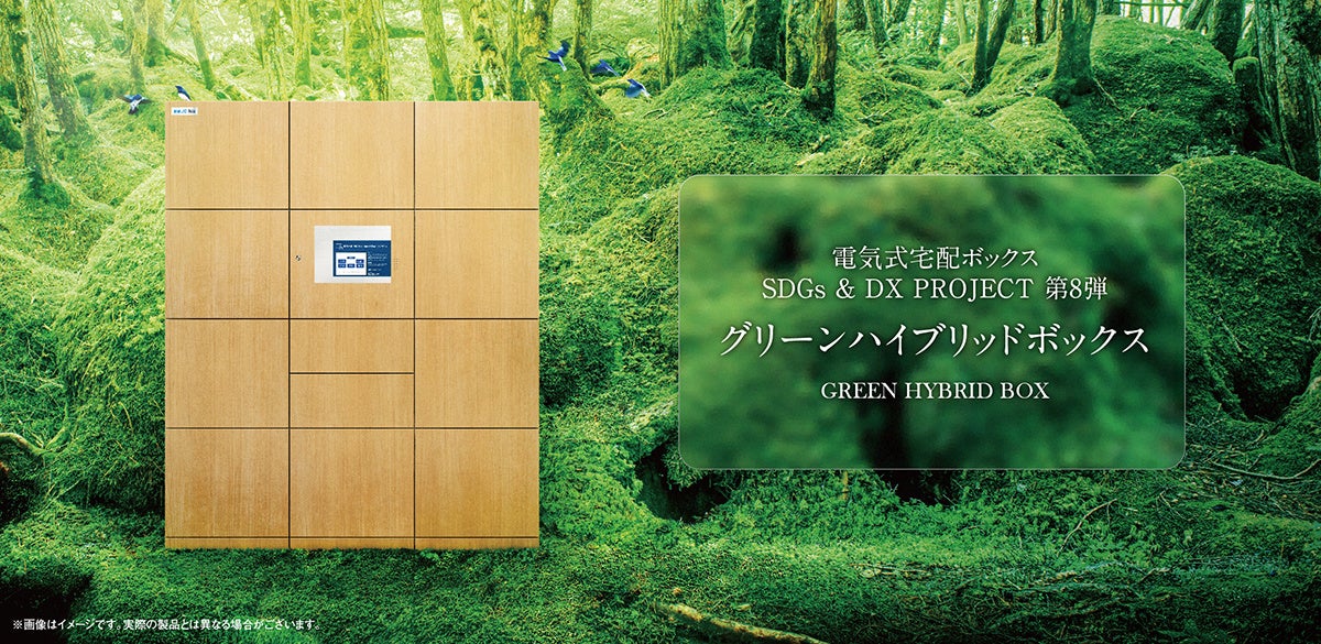 電気式宅配ボックス SDGs & DX PROJECT 第8弾は木の電気式宅配ボックス「グリーンハイブリッドボックス」の販売開始。専業メーカーの技術で従来の機能を損なわずに宅配ボックスの木材化を実現。