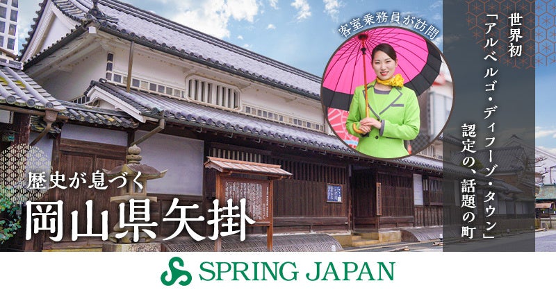 SPRING JAPANの客室乗務員が矢掛町を訪問し、宿泊施設をはじめとした様々な建物や店舗を訪れ、どこか懐かしくなるような町並みの中で新しい矢掛町の魅力を発見し、SPRING JAPANの公式サイト内にて特設ページでご紹介します。