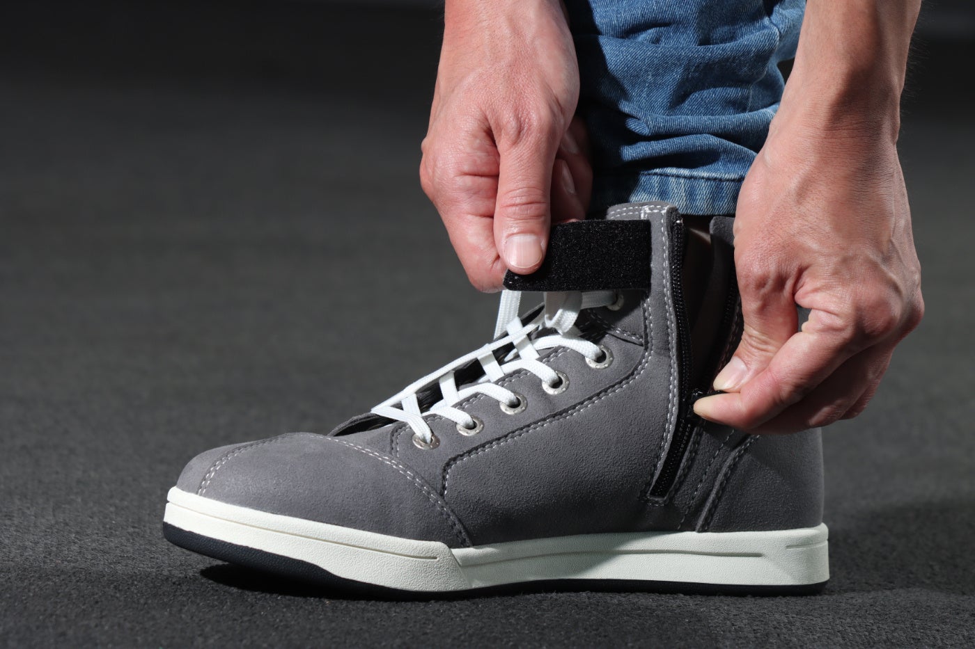 サイドジッパーを装備しているので脱ぎ履きも容易です。