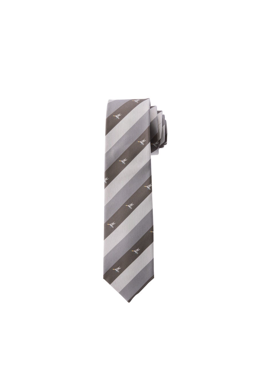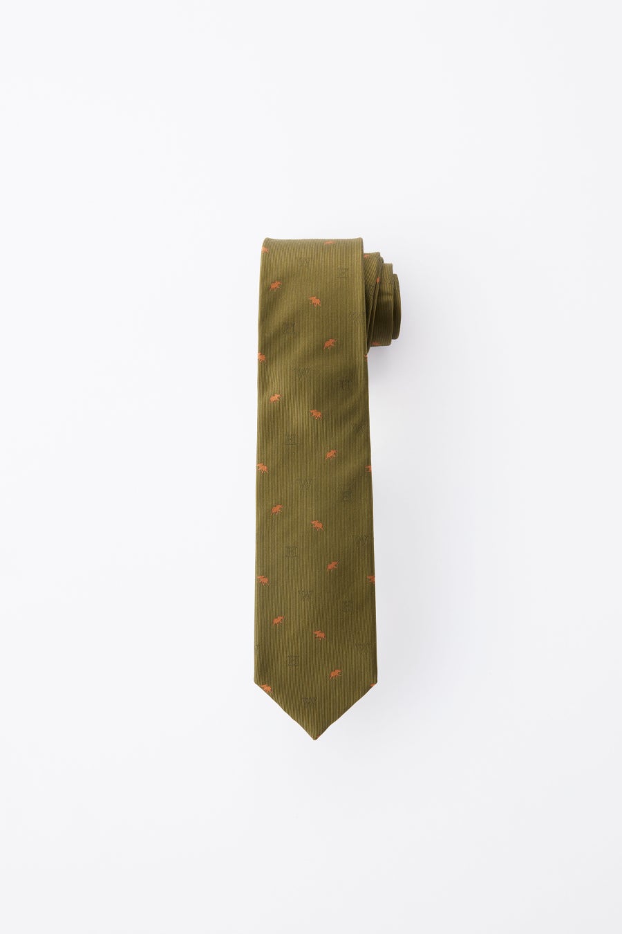 国内外にあるタイの産地に直接足を運び、高品質でトレンドを抑えたオリジナルデザインの提案に定評がある「麻布テーラー」のフィルターを通し、鴨や象などの「ハンティング・ワールド」のアーカイブモチーフをベースにした、現代的アメリカントラッドなムードが漂うタイが誕生しました。