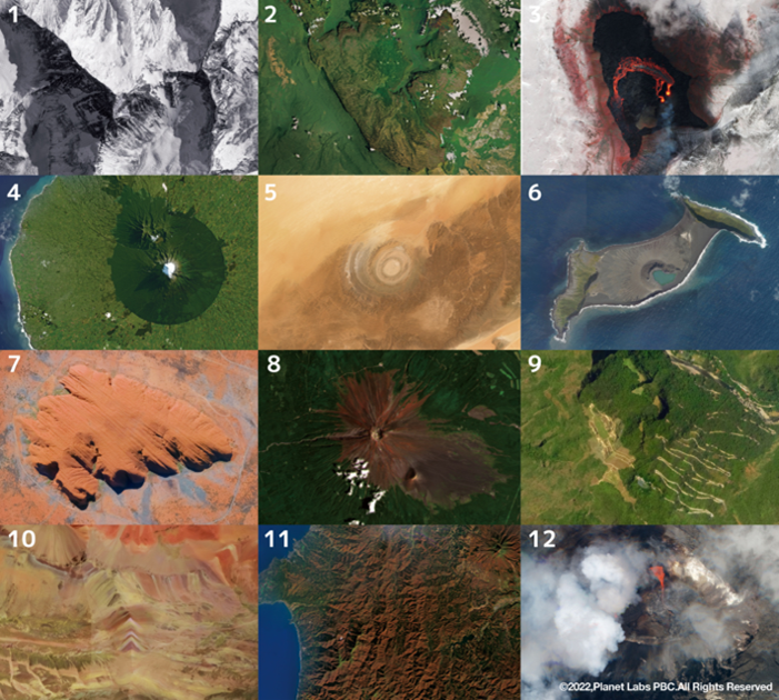 今回、「山のクレヨン」に採用した色は、エベレストや富士山など馴染みのある山から、衛星画像の面白さで選んだタラナキ山、地球のパワーを感じさせるトンガやキラウエアなどの火山、そして地球の神秘が生み出したリシャット構造やレインボーマウンテンなど、魅力的な山々の12色です。