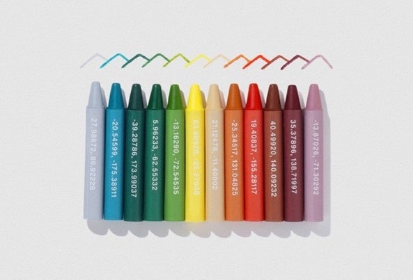“Satellite Crayon Project”第一弾である「海のクレヨン」は、クラウドファンディングを経て2022年1月31日から発売し、世界三大デザイン賞のひとつ「Red Dot Design Award 2022」や「グッドデザイン賞」、「文房具総選挙2022大賞受賞」など国内外で数々の賞を受賞し、国内のみならず台湾をはじめ海外でも話題を集めて販売されています。「山のクレヨン」は、この「海のクレヨン」に続く、地球の色のクレヨンシリーズの第二弾となります。宇宙から撮影された数千枚の衛星画像をもとに、世界12か所の実際の「山」から色を抽出しました。クレヨン職人とともに試行錯誤を重ね、衛星画像に写る山の色を細部まで忠実に再現しています。それぞれの色にあえて名前は付けず、色を抽出した山の場所を示す緯度・経度が記されています。衛星画像を通して、地球の「色」の豊かさをより多くの子どもたちに伝えたい、実際の地球の「色」を思うままに楽しんで欲しい、地球に興味を持って好きになって欲しい。Satellite Crayon Projectが制作するクレヨンにはそんな想いが込められています。